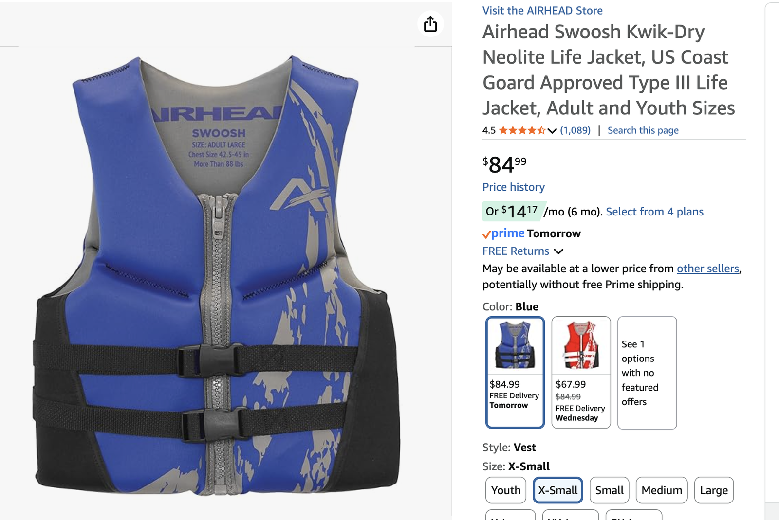 COMFORT - Less bulky design for use when quick response is likely, offers a larger range of motion making it a favorite for water activities. Closed sides, zipper, double buckle closure and crotch strap keep life jacket securely in place, KWIK Dry Neolite remains comfortable against the skin for all day wear