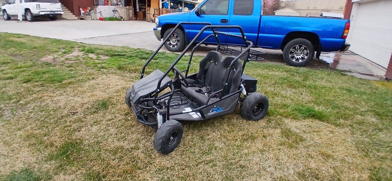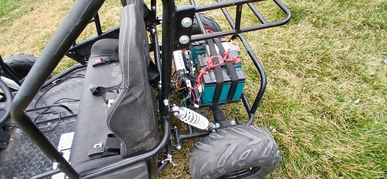 got this go kart all It needs is batteries it's an electric go kart has a differential with dual disc brakes in the rear and a super clean seat and I have the charger.