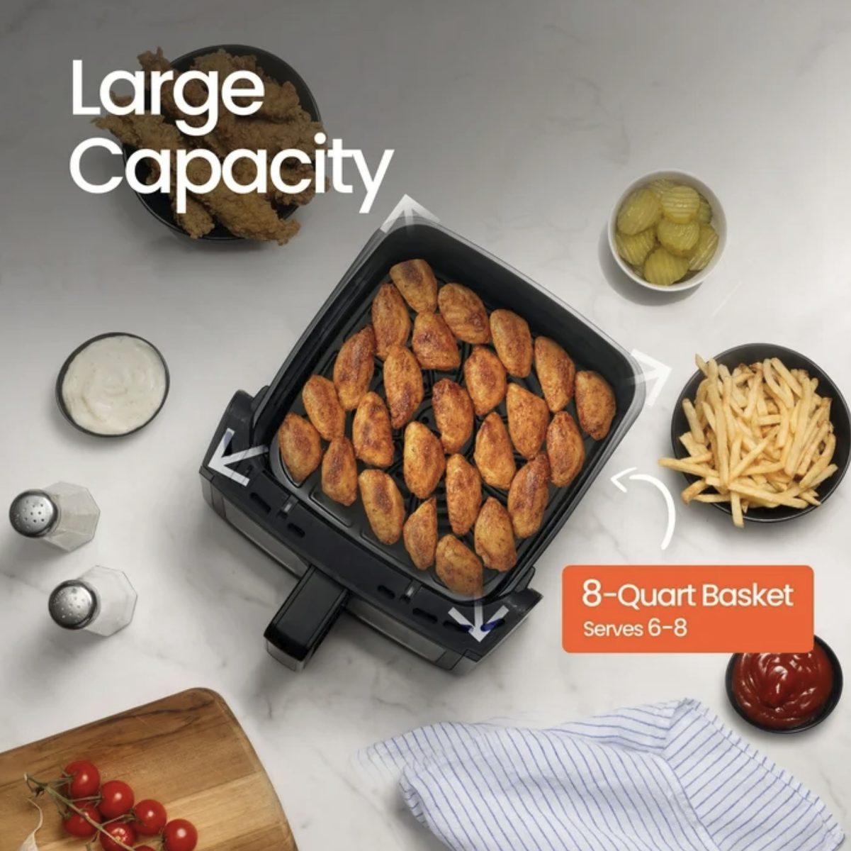 Extra-large 8-QT capacity cooks for 6-8 people