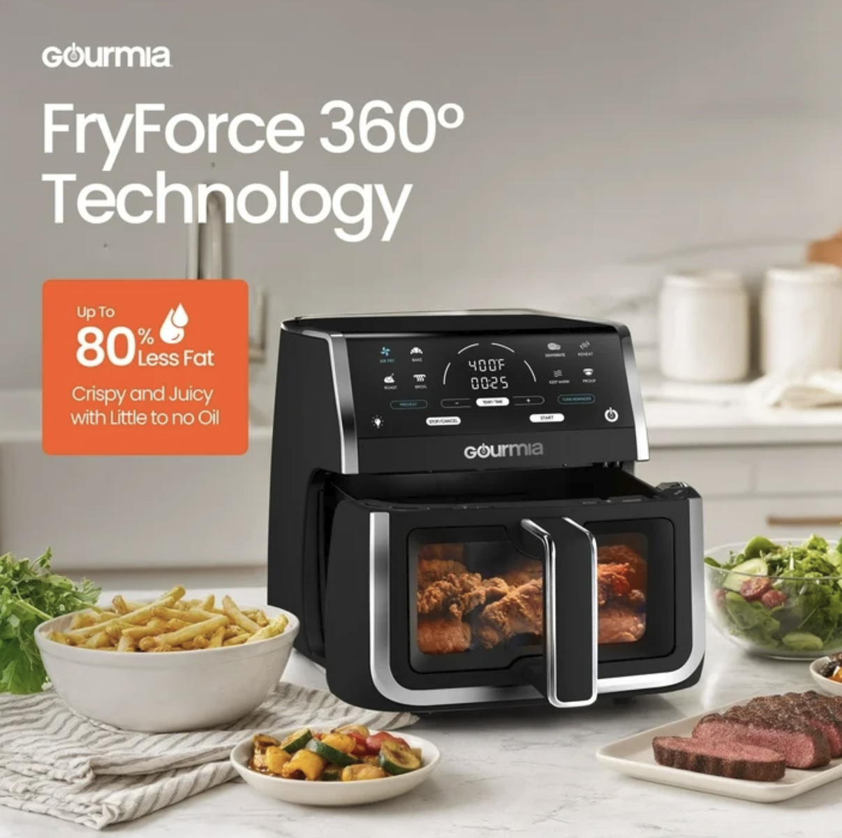 FryForce 360° Technology™ fries with air for up to 80% less fat