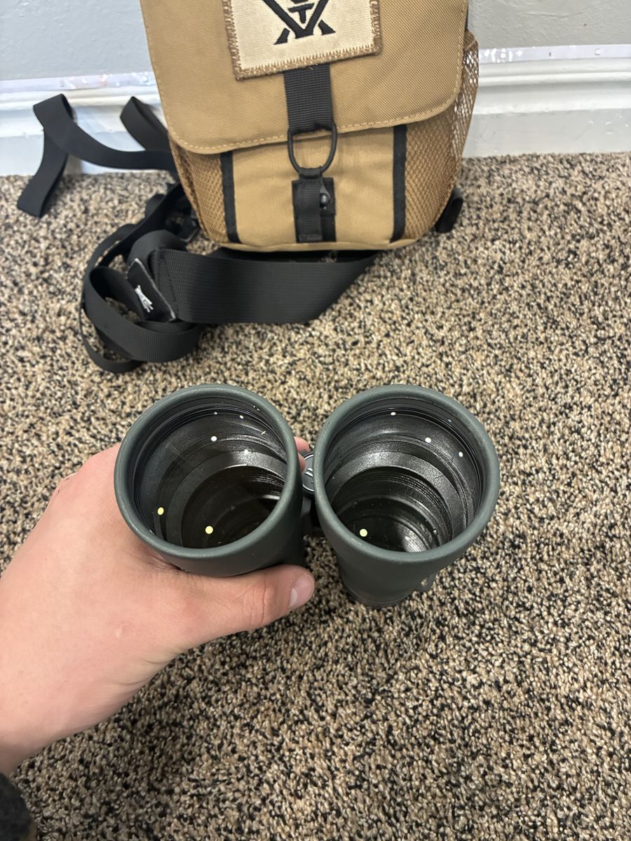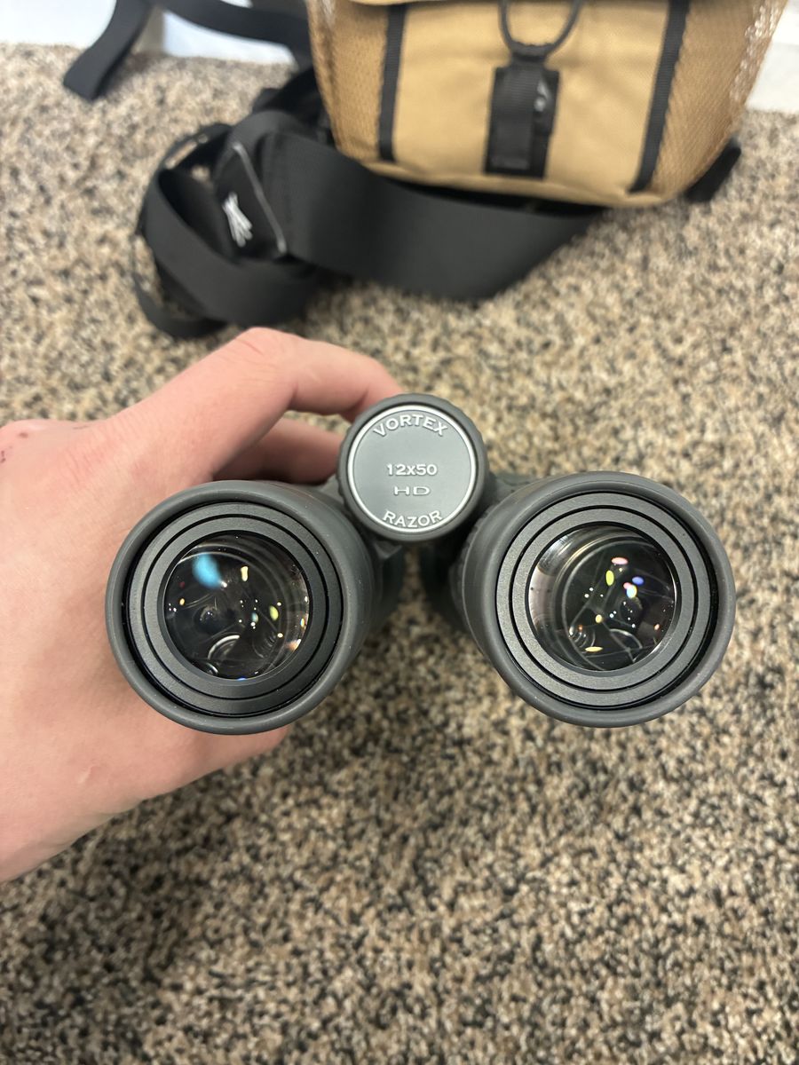 VenmoAwesome Vortex Razor HD 12x50 binoculars. Comes with carrying case and strap. Lenses are super clear.