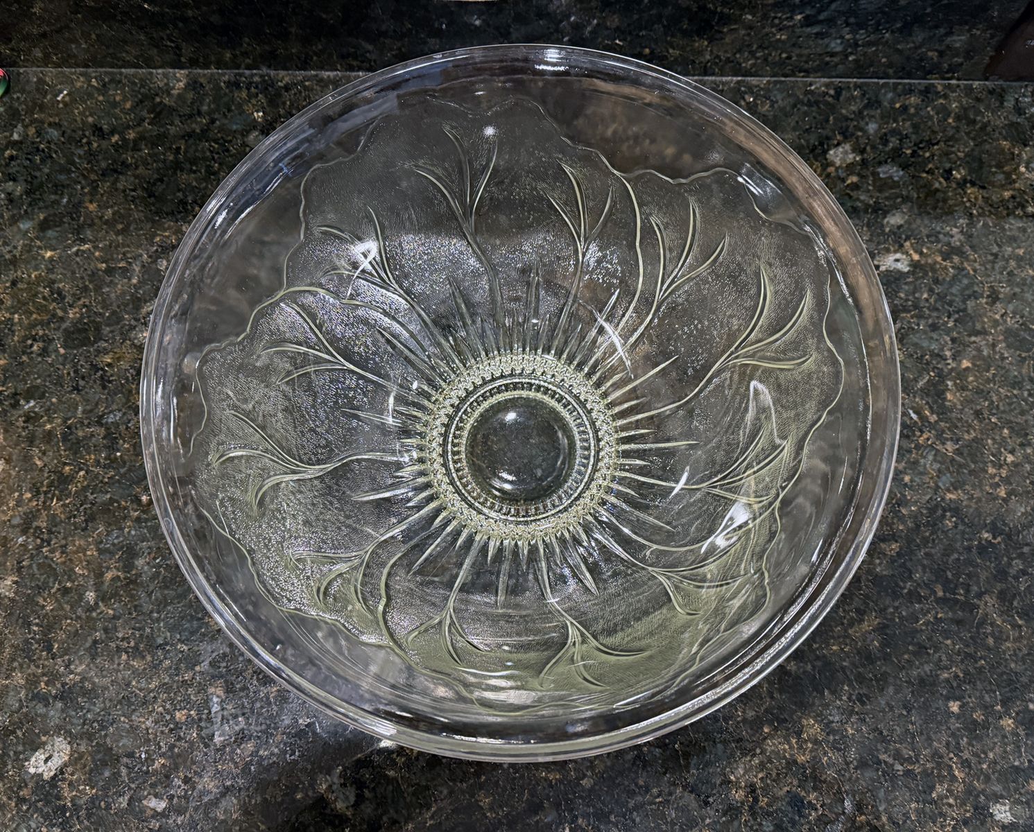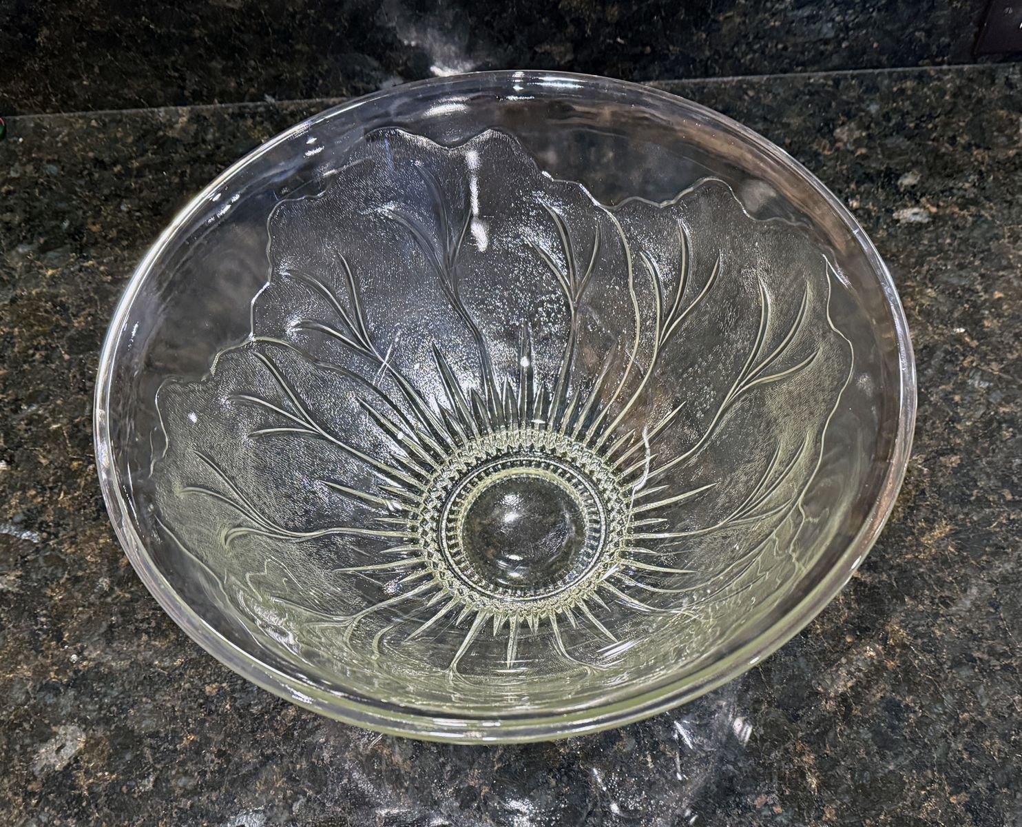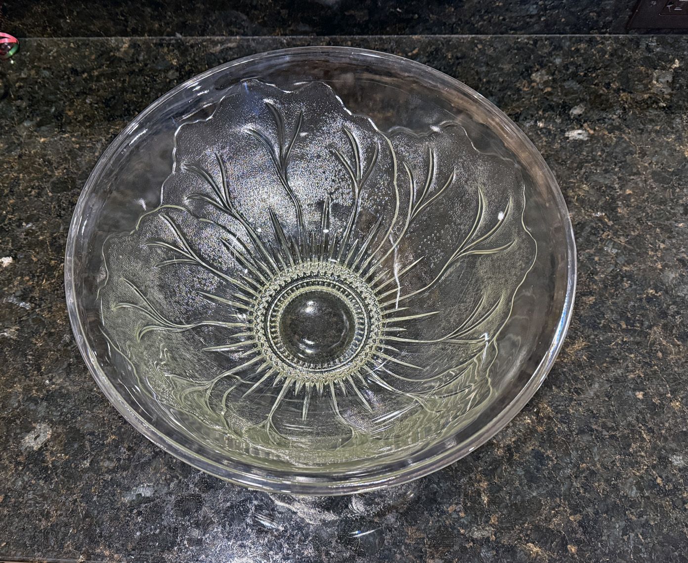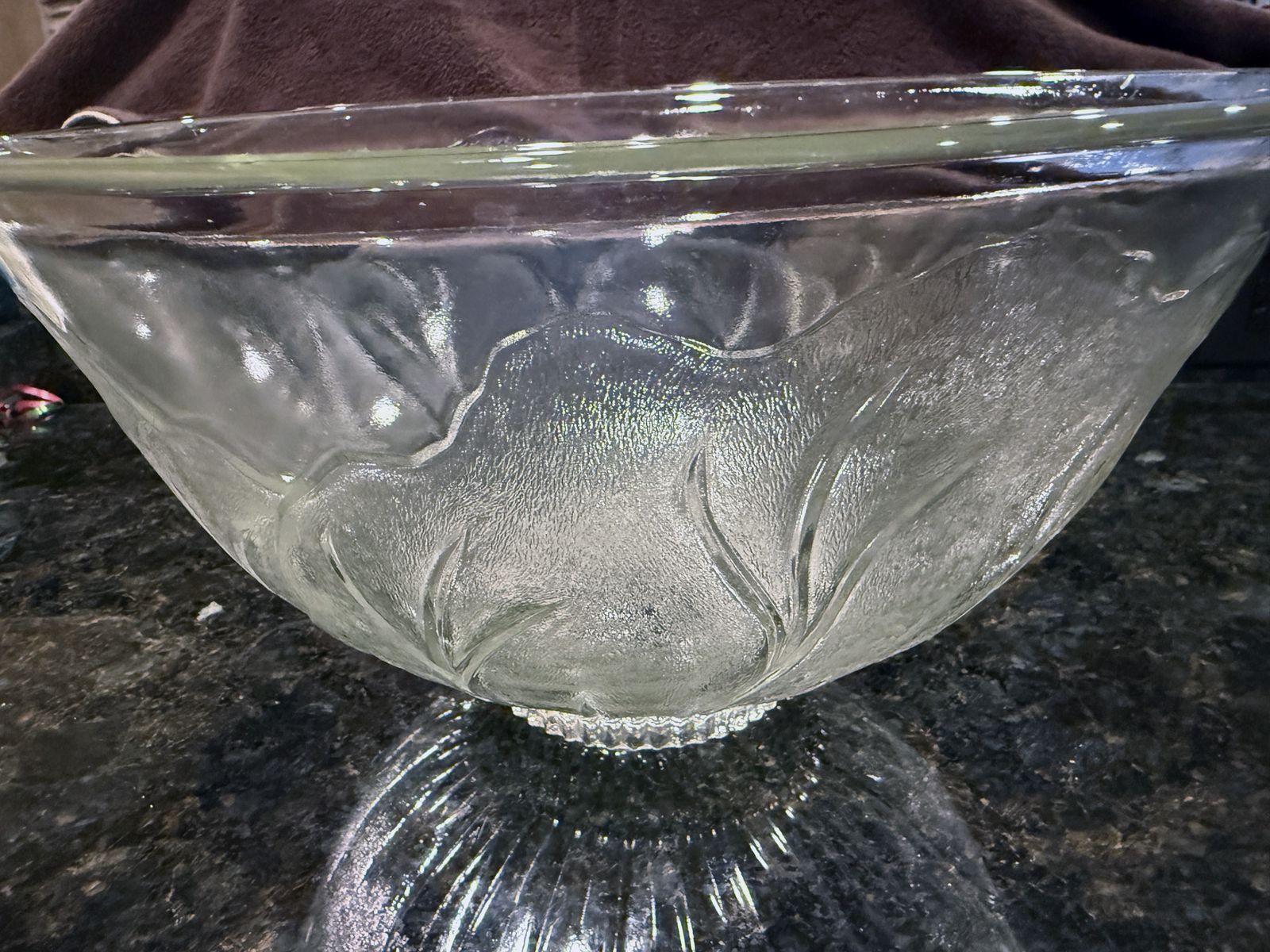 Vintage Indiana Glass Pebble Leaf Punch Bowl. No glasses or ladel, just the bowl. Bowl is about 14.5 inches wide.
