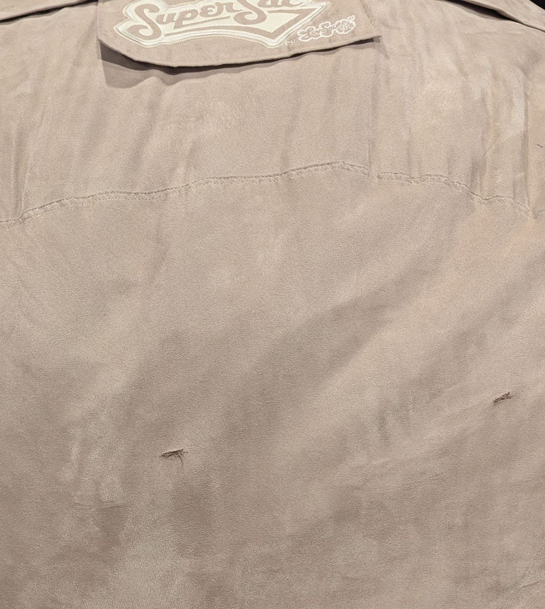 Moderate use with a few tiny cosmetic tears (about 3/8 inch) from normal wear - shown in the last photo. No major rips or structural damage. Has removable/washable protective cover.