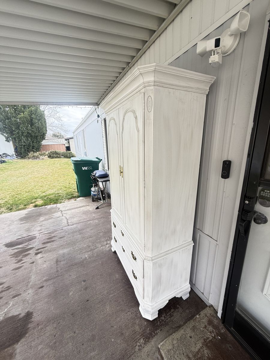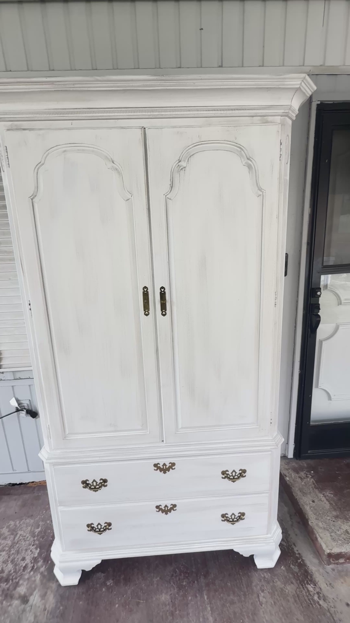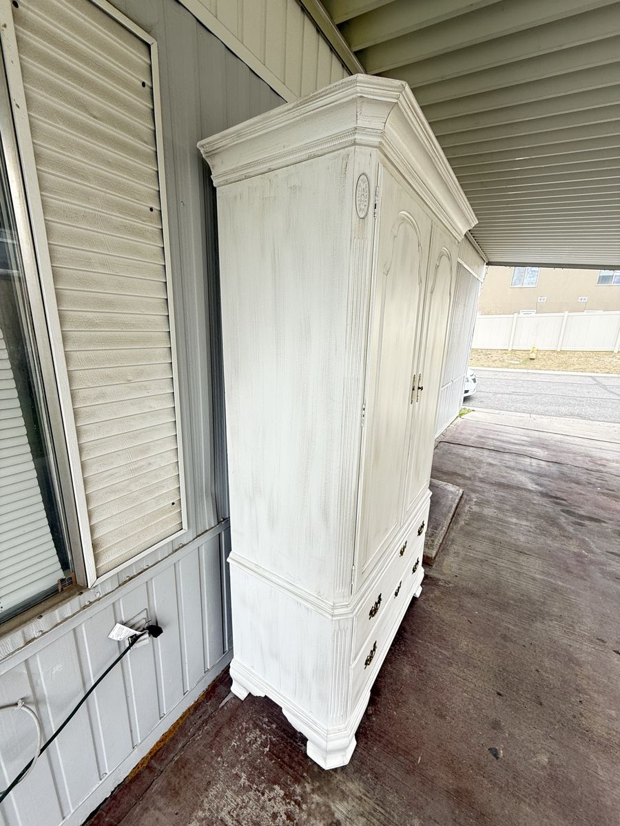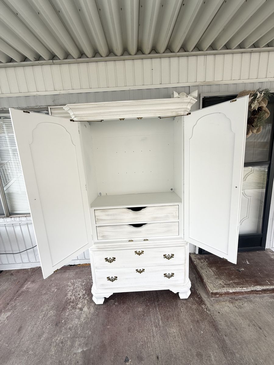 CashAppAntique Ethan Allen Armoire Made In America Beautiful piece in great condition Crafted from high-quality solid oak, this freestanding wardrobe boasts hinged doors, drawers Bun feet and molding add to the beautifully crafted design. Original hardware.wood and modern design and paint ,ready fo a new home free delivery around ore area