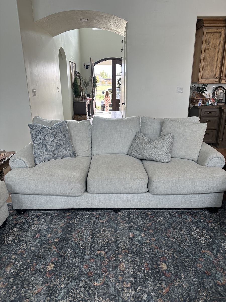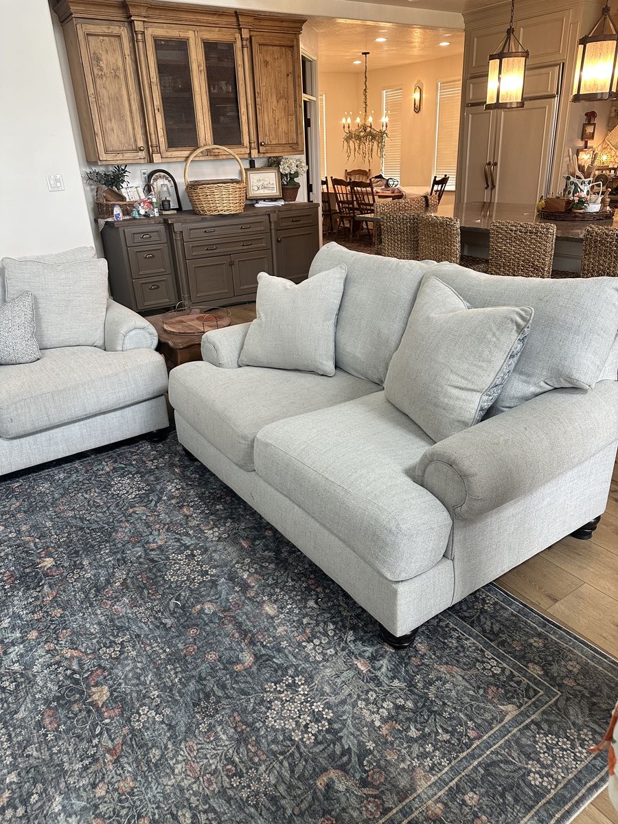 I don’t care if you want one or all three pieces but I have one full couch and two love seats from Ashley Furniture. Excellent condition.