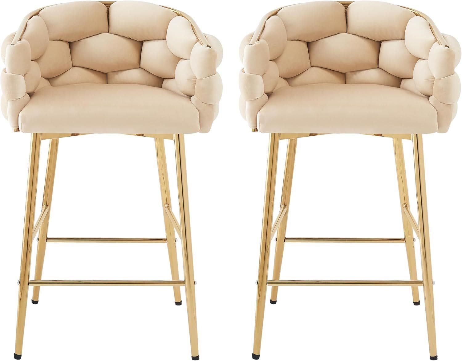 Roomfitters 2pc Velvet Counter Stools - Beige