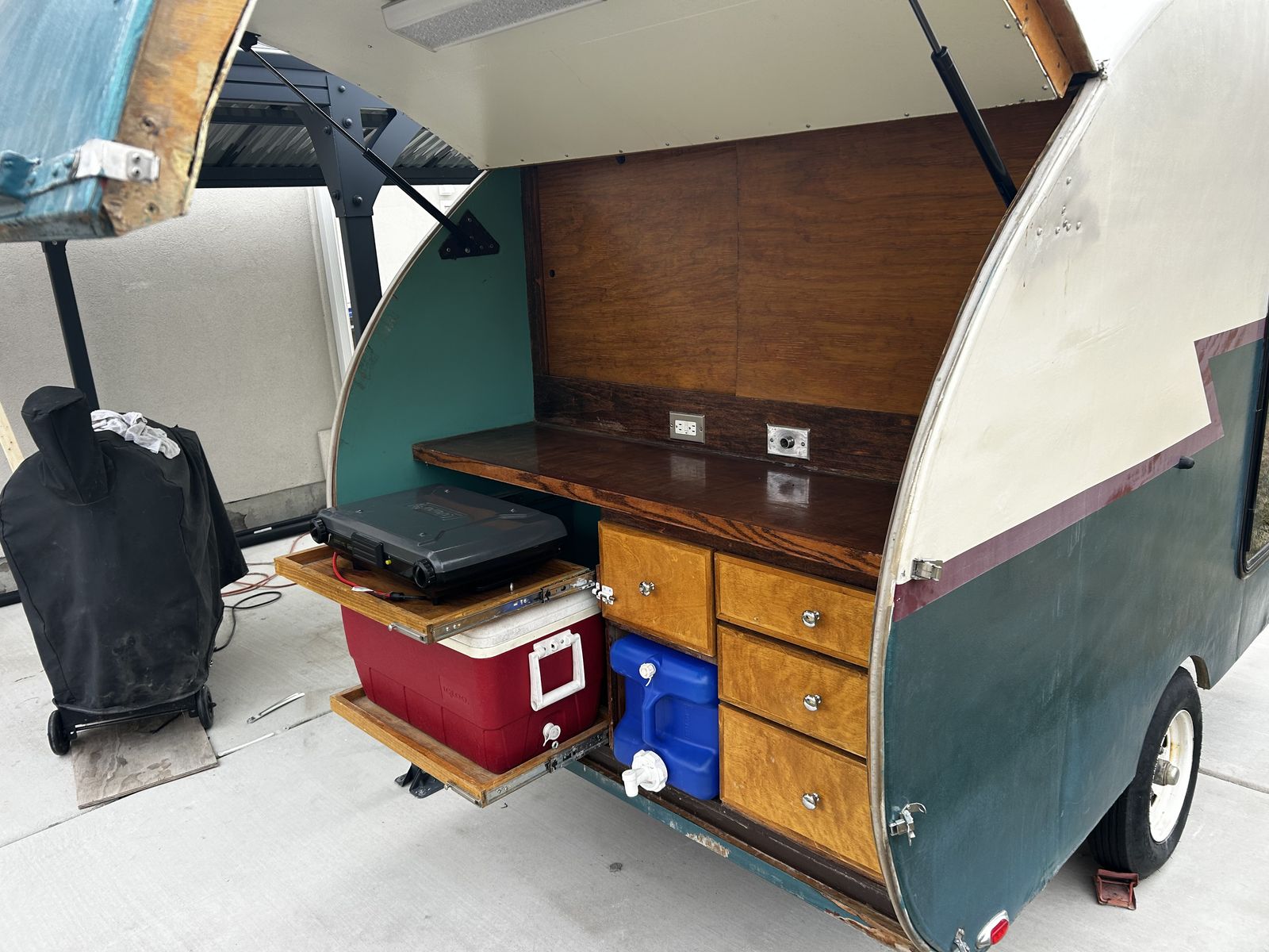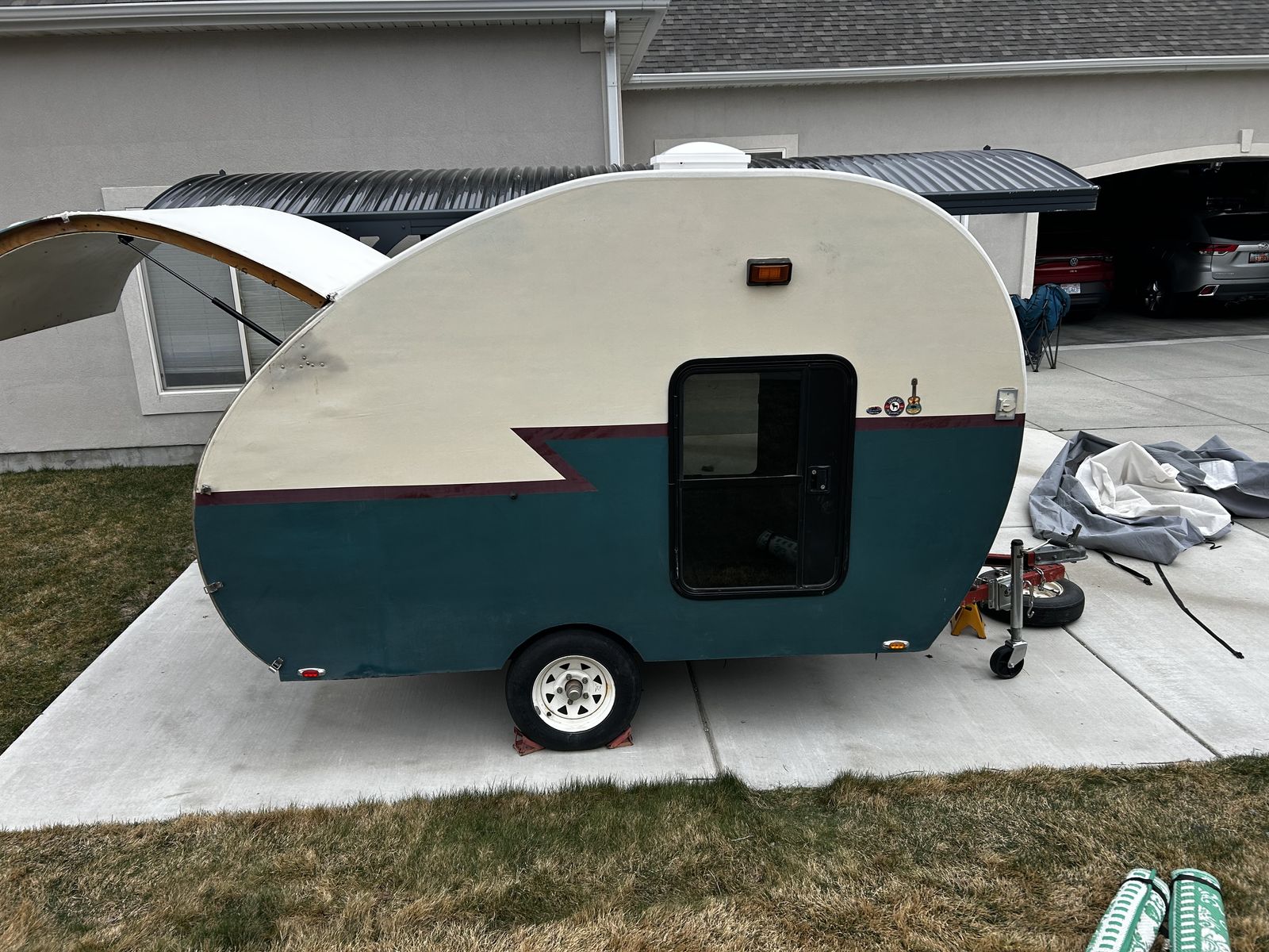 VenmoI built this I’m my garage in 2013. See details in build blog chucksteardropbuild.blogspot.com. Large bed 58 by 80 inches (a queen bed is 60x80 for reference). Pop up table and fold down bench great for waiting out rain storms. Insulated, 110 and 12V outlets in cabin and galley. On board battery tender to keep your battery charged and maintained when plugged in at home. Nearly new tires and battery. Follows great, no zig zagging. Inside and outside lighting works from battery. Spare tire, lug wrench, Coleman stove, cooler and Coleman lantern and teardrop cover all included. Hatch self opens with gas struts(see video). Fully functional and roadworthy but could use some touch up of paint and shows some wear and tear in places. The outer shell is fiberglass and there was some checking from the sun last year so I coated the roof with a roof paint last year. I just noticed a minor crack that will need attention.. It’s really cute and you get a lot of folks coming round to ask you about it when you are camping. It’s currently licensed and registered and I have the title. We have enjoyed it for many years but I am now 70 and it’s time to get something I can walk into so I’m ready to let go of my teardrop. Give me a call or message if you have questions or come over and I’ll show it to you.