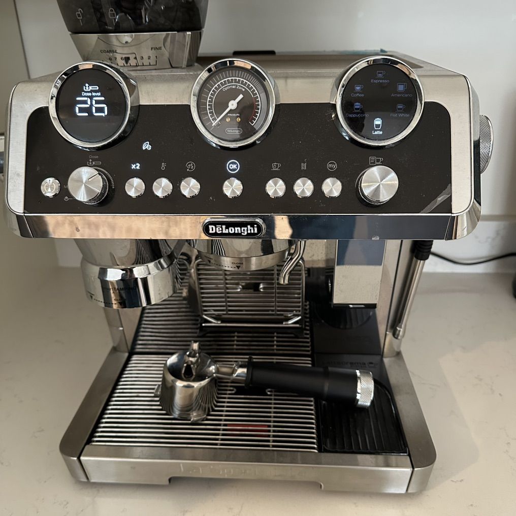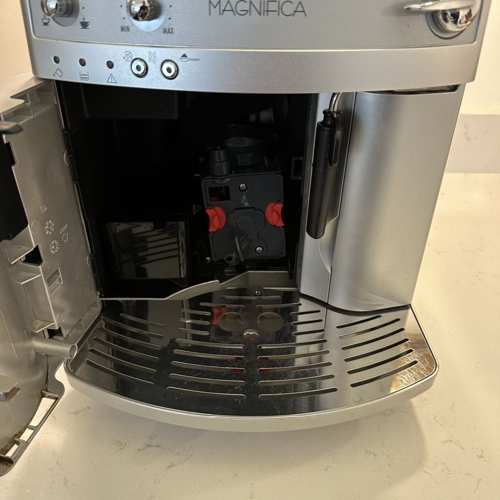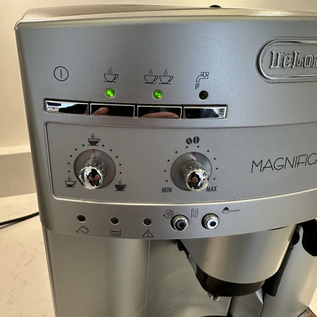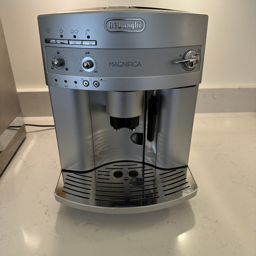 VenmoDelonghi Magnifica Espresso Coffee Machine. Machine is in excellent condition. See all photos. The only reason for selling is we bought a bigger Delonghi machine (see last photo). Bring your coffee cup when you pick it up and I’ll make you an excellent latte. You won’t find a cleaner used machine.