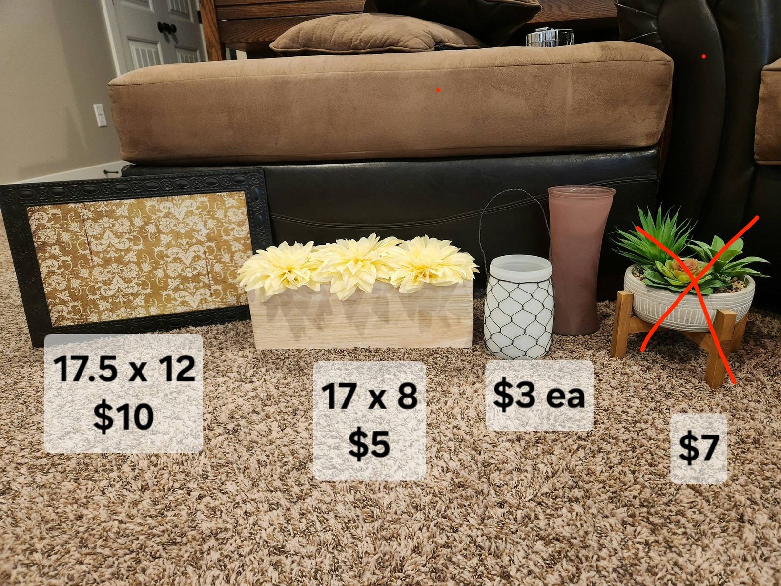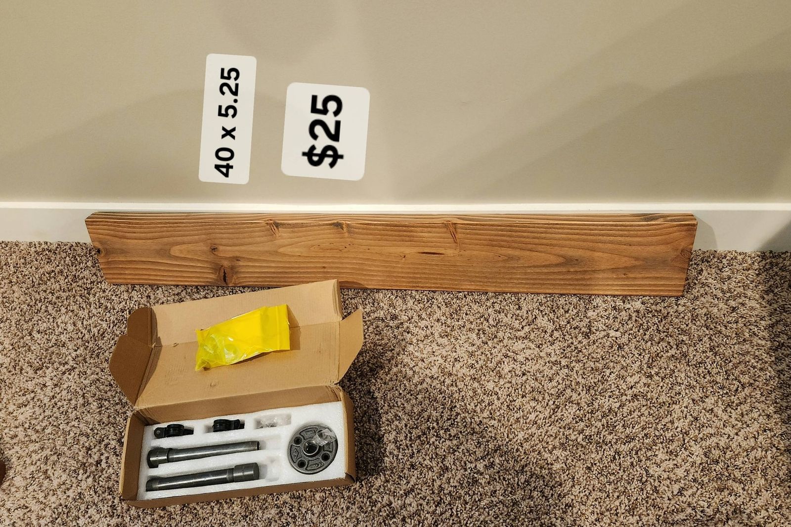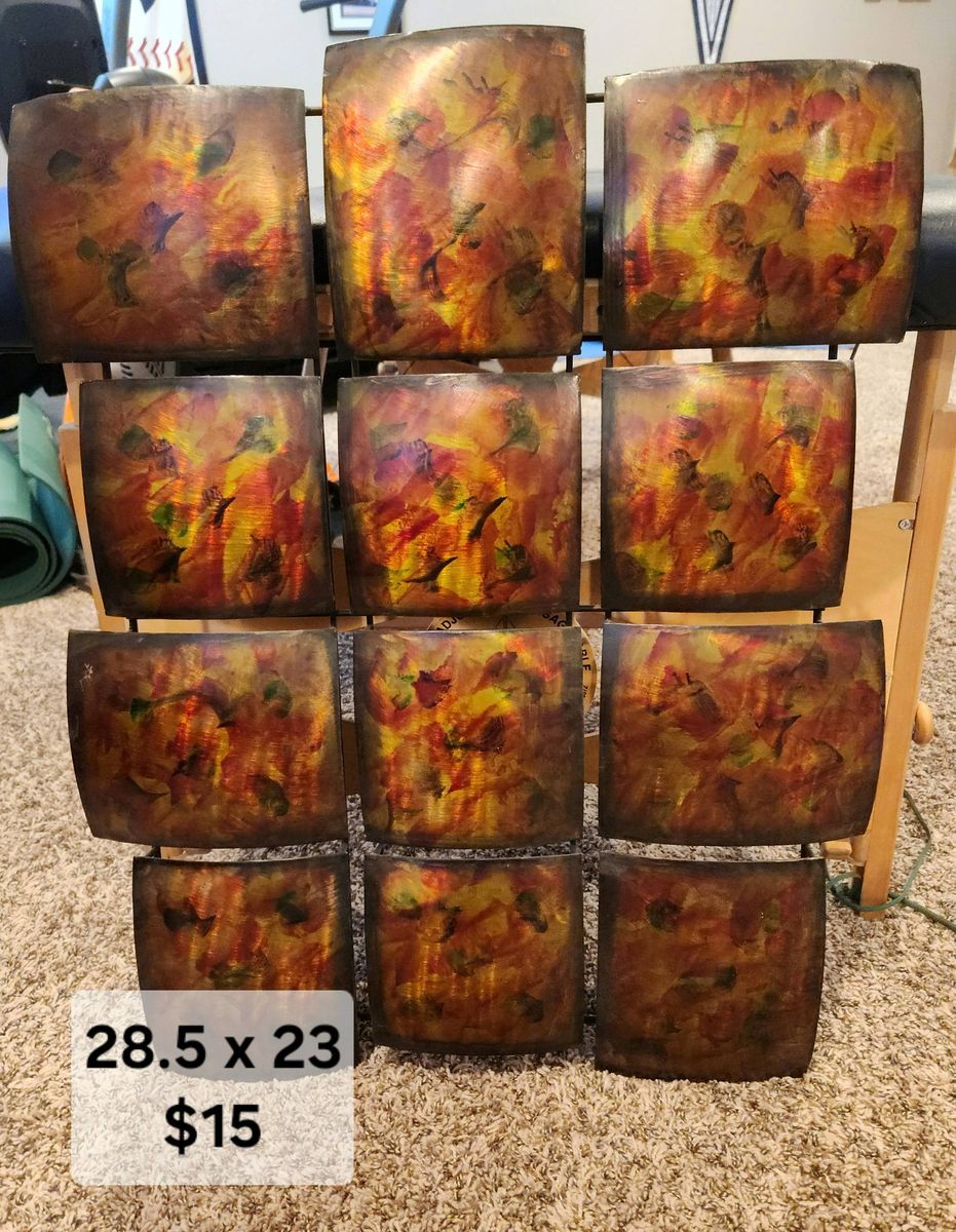 VenmoShelf and wall decor, burlap wreath, shelf with mounts (brand new), iron rod wall decor, shower curtain and liner, pic frames (soom brand new)- sizes and prices in pics.