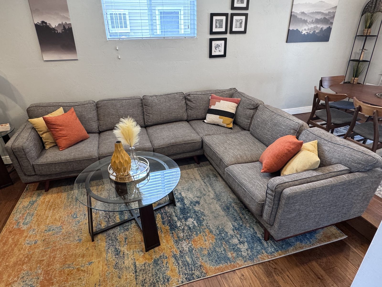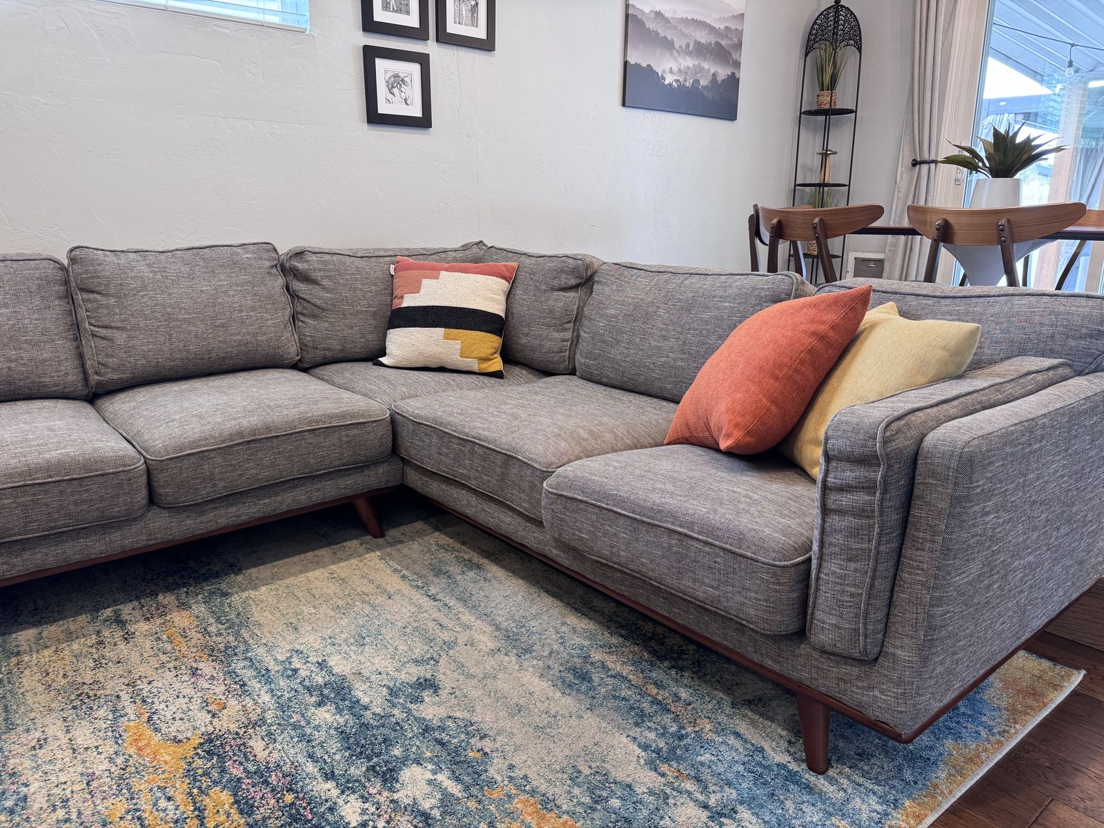 CashAppNice large sectional. All cushions have additional cushion covers to cover existing cushions up if wanted. Dimensions: long side 120” long Short side 95” long 38” deep x 31” tall