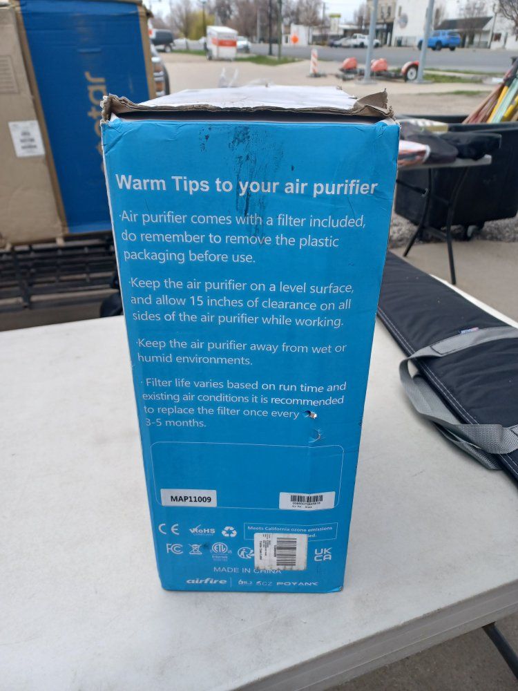 air fire air purifier model ap307, auto mode, ultra quiet sleep mode, filter replace indicator, four-speed fan, 2 - 8-hour timer brand new any questions please message me