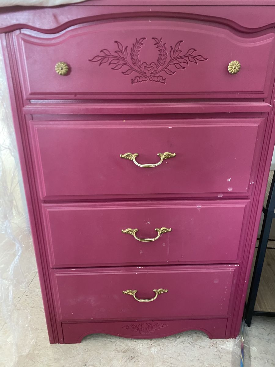 Twin bedroom set. Dresser, headboard (no hardware), and night stand. Drawers work well, just did built ins in closets so don’t need them anymore.