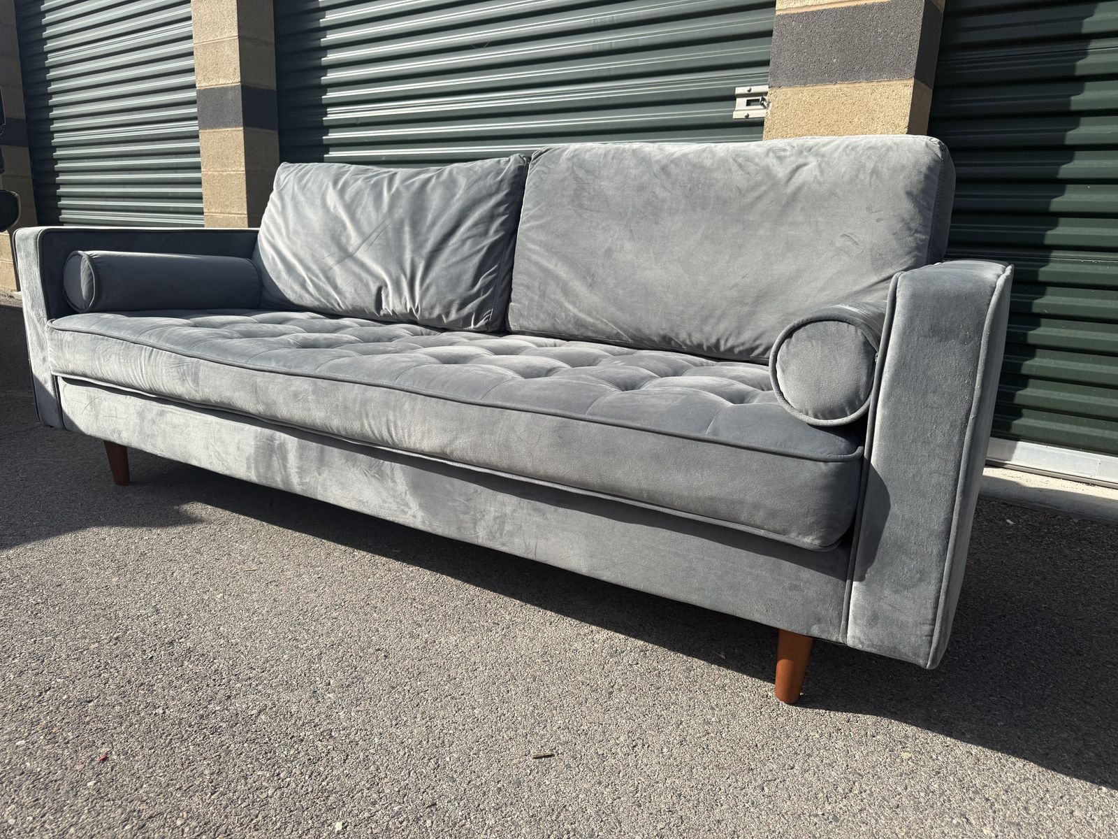 ApplePayI have a nice soft velvet comfy couch in great condition. Comes with two matching side pillows. I can deliver anytime