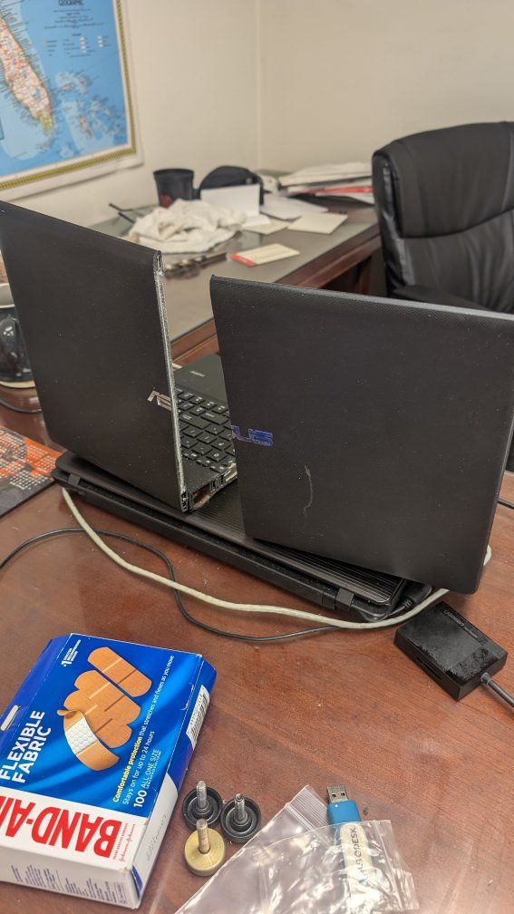The laptops cut in half quite nicely, and would be perfect for an April fools day prank.