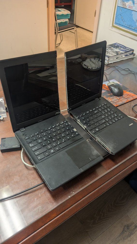 Laptops have had batteries, hard drives, and RAM removed. I normally recycle them, but they're just not worth much.