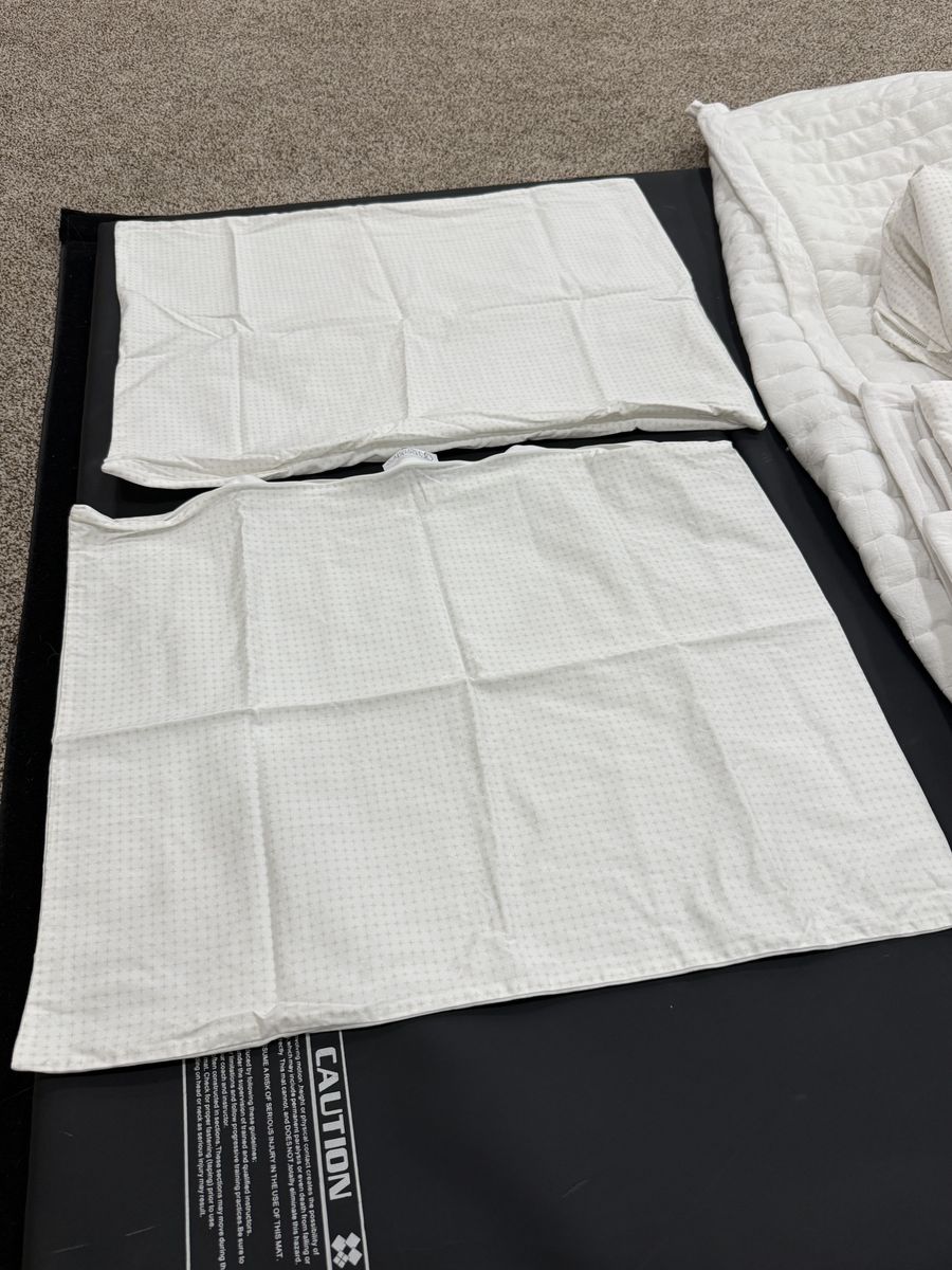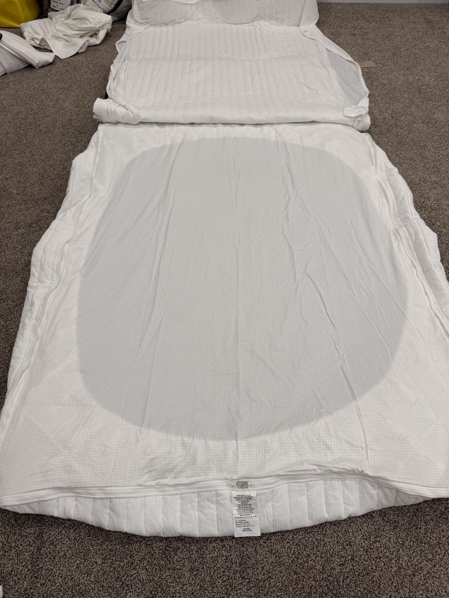 Emerson Full Dual Comfort Zipbase. Has 2 shams and 2 cases and 2 sheets and both the minky and cotton interiors. Small red line on top shown.