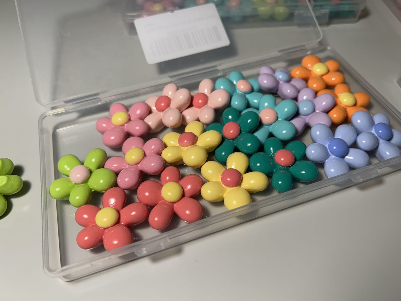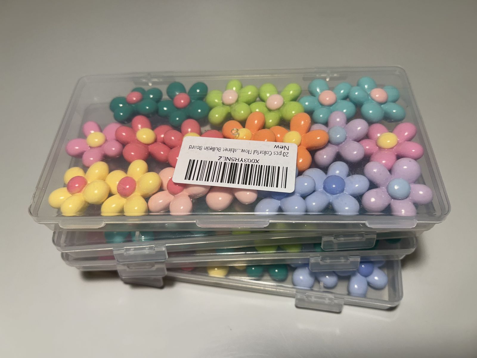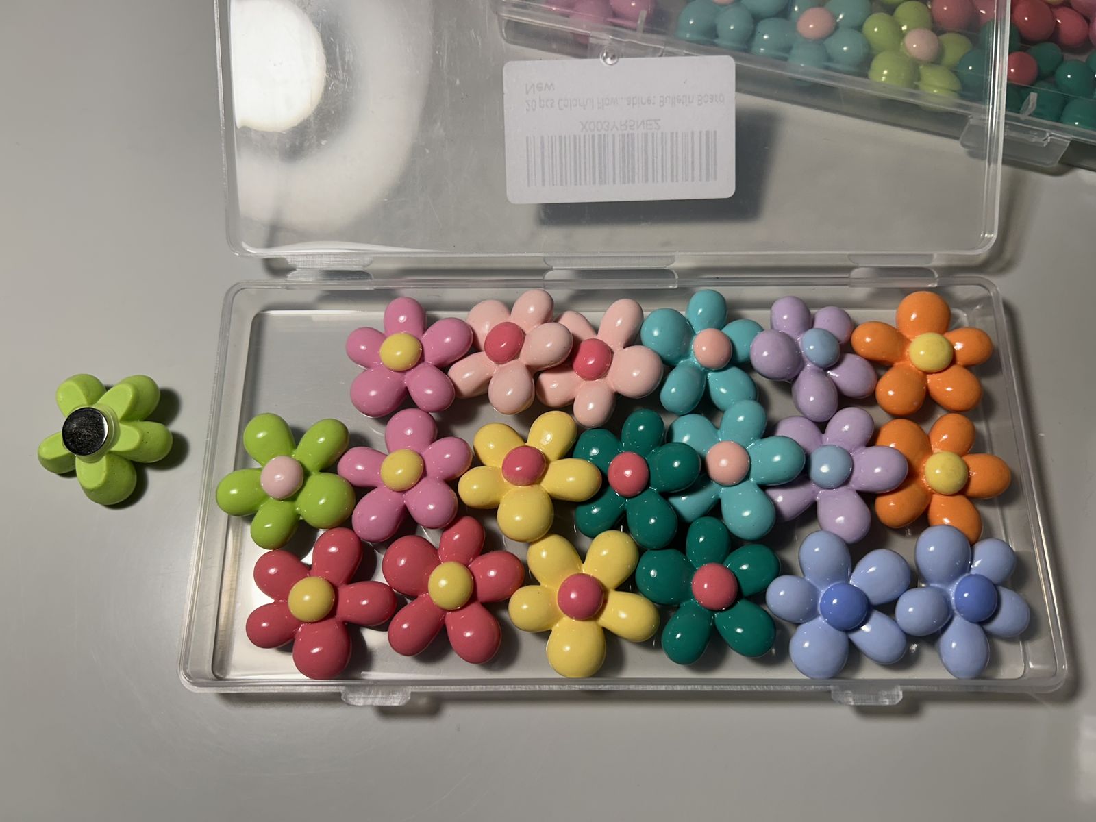 New! Fun, colorful flower magnets. 20 pieces per box. Four boxes.