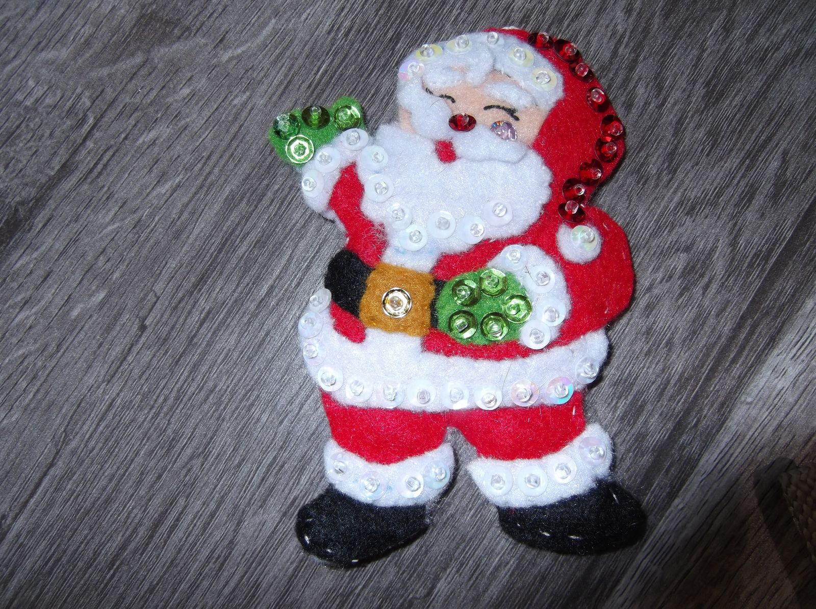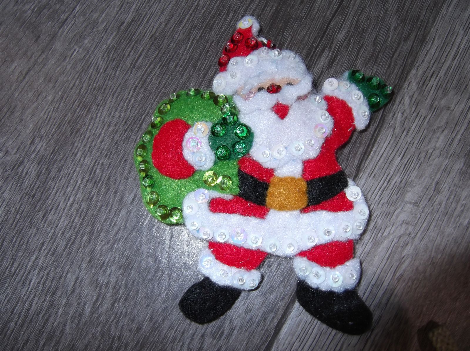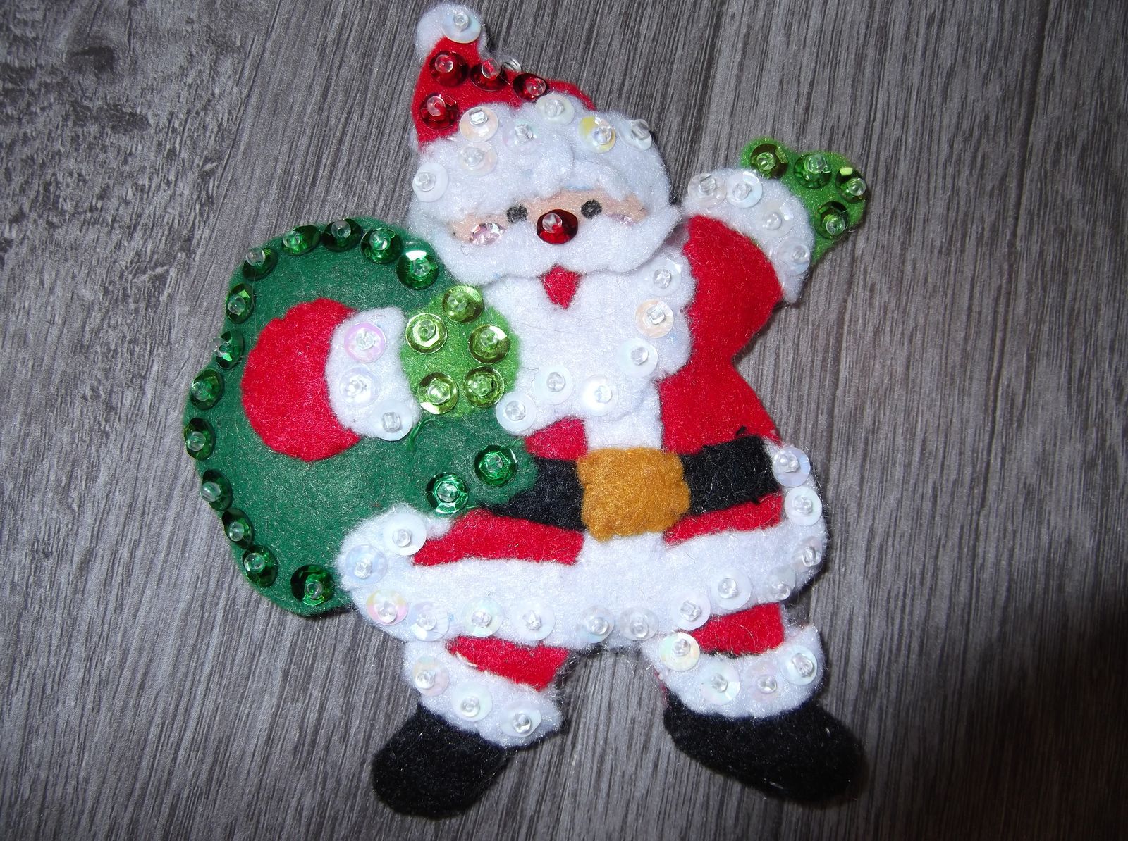 SANTA CAN COME EARLY TO YOUR HOUSE! If you hang these cute felt Christmas Santa ornaments on your tree. Each ornament is an embroidered, sequined, and stuffed felt Christmas ornament lovingly done by hand. Approx. size ranges from 3.5 – 4.5”. This is a set of 13 ornaments and is sold as a set.