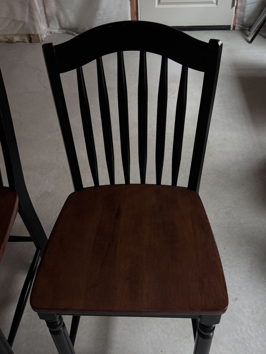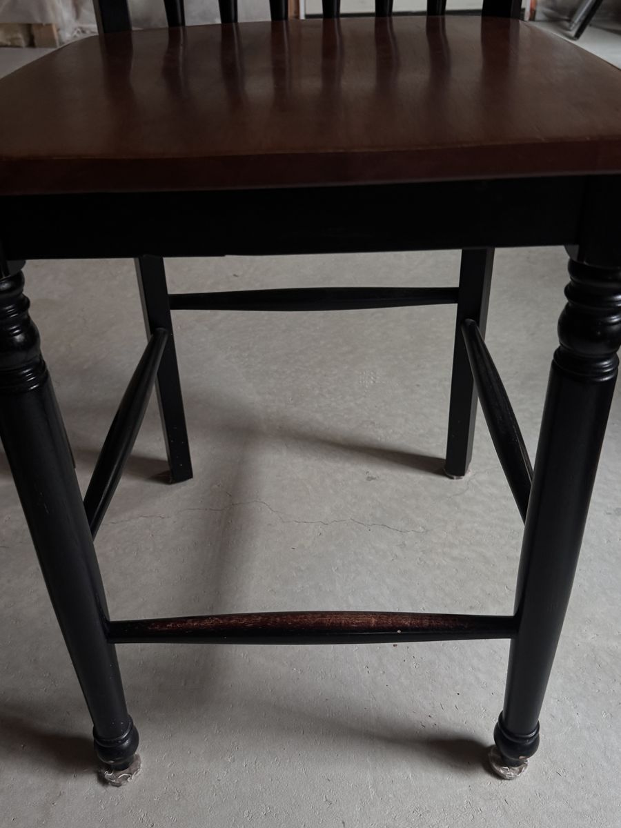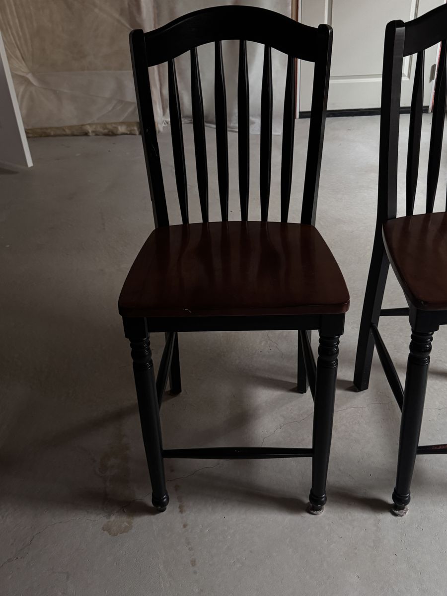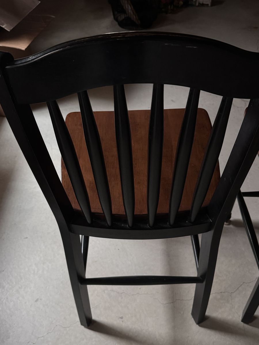 VenmoOne wooden bar stool second one broke in the move and is fixable and free. Brown wooden seat 24” high and the rest in black with foot rest.