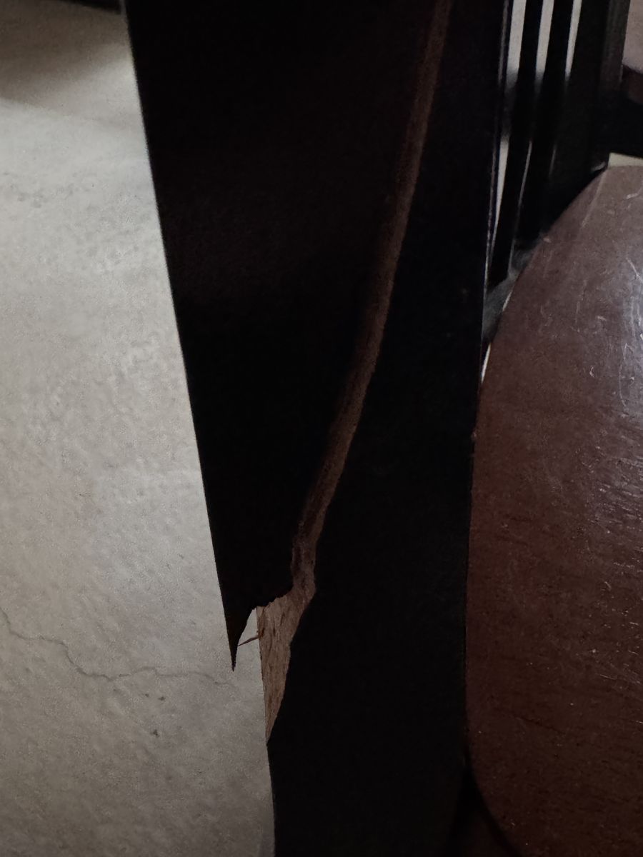Second Bar stool broke on the back right side in one place. Can be fixed:)