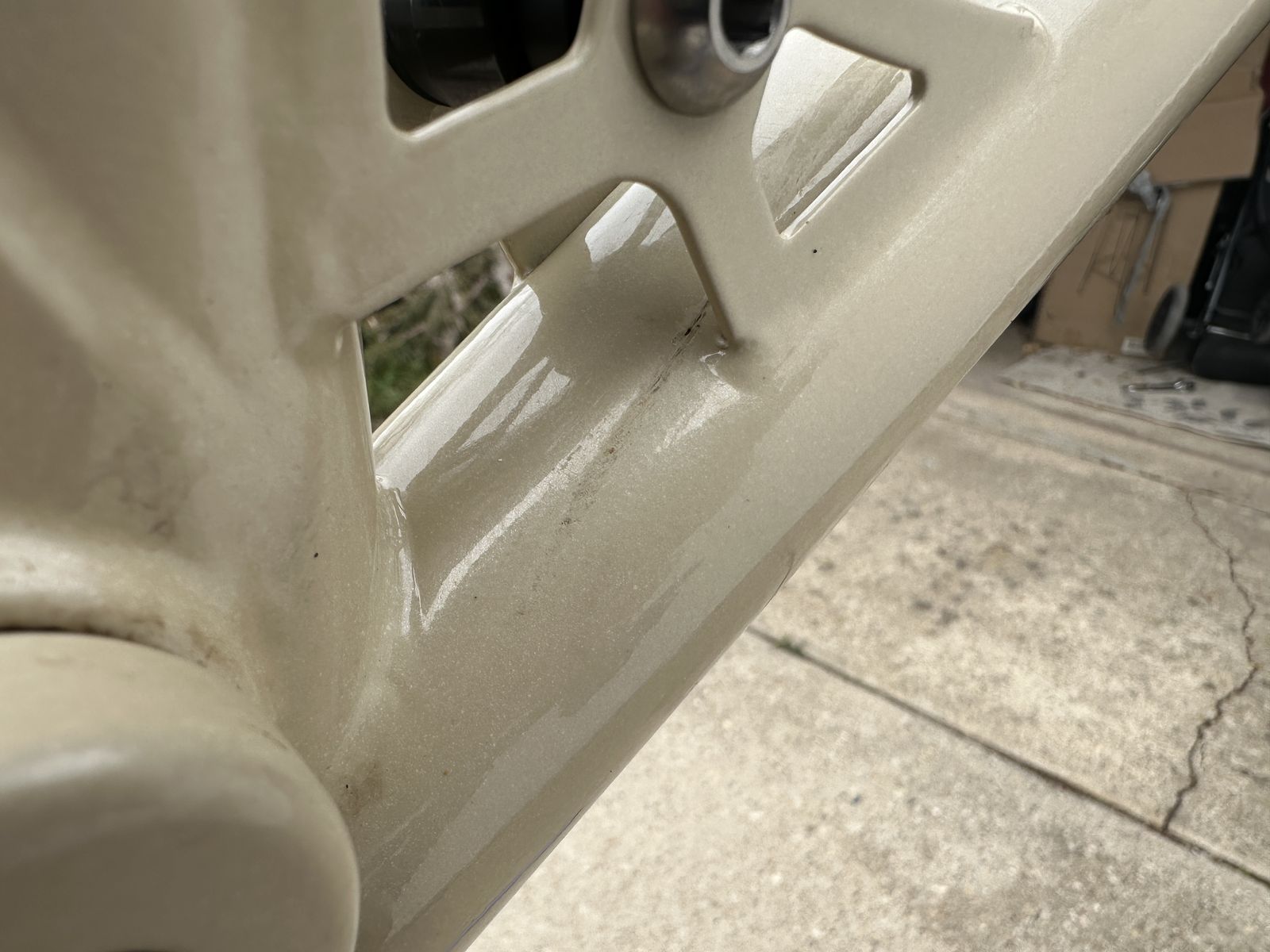 It does have some scratches and paint chips, mostly on the rear triangle. No dents or damage beyond paint. I believe all affected areas should be pictured. Please let me know if you have any questions!