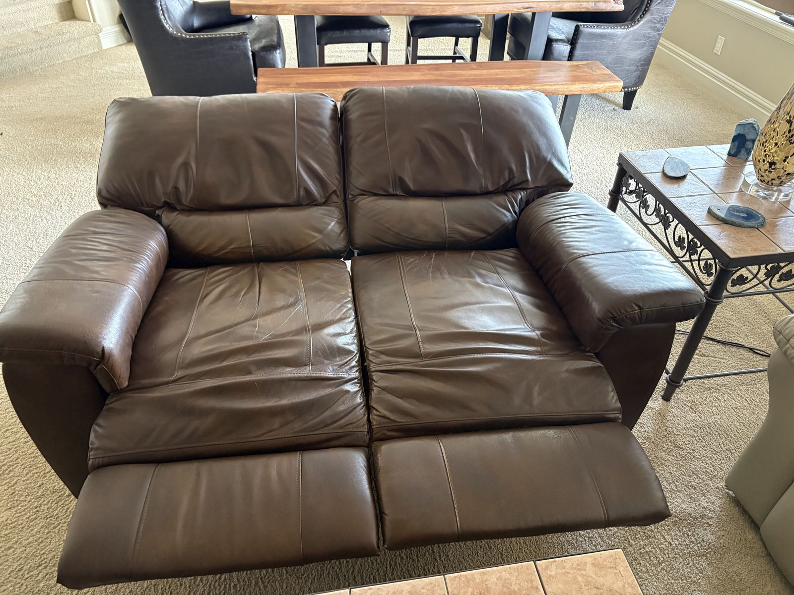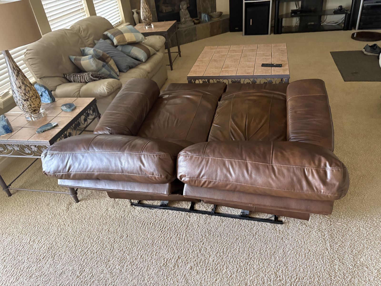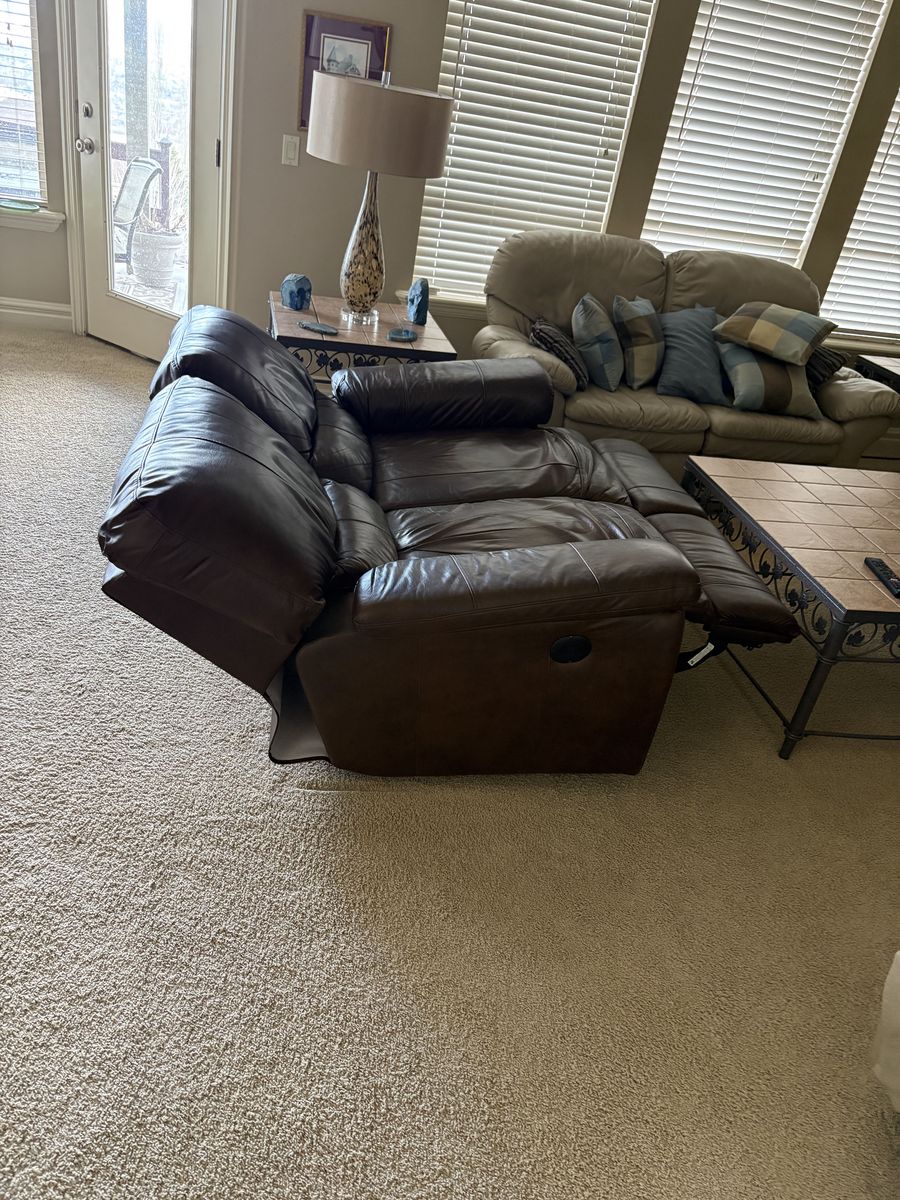 VenmoMeasures 64" x 36" deep by 38" tall back x floor to seat 18". Electric recliners loveseat. Brown leather. In Draper by the Draper temple $350 cash/venmo
