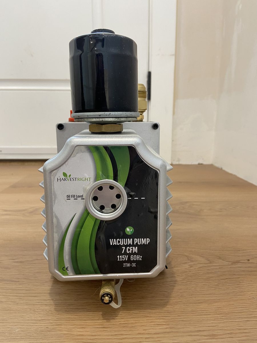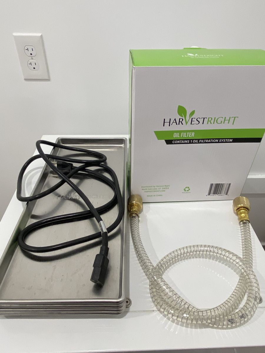 Purchased in 2019. Has oil pump, cord, new vacuum hose, 4 trays, and oil filter system. We just purchased a new, larger dryer. This one works fine. Price is firm. Cash and carry only.