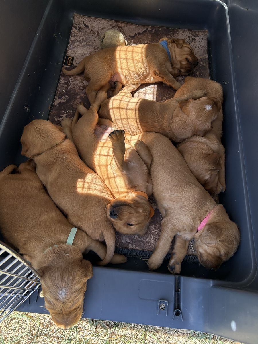 VenmoAKC registered field-bred golden retriever puppies. 1 male and 2 females left. Puppies will be ready for their new homes the week of May 10th. They will come with their first 2 sets of shots. They will be AKC registered with breeding rights for selected homes only. The mom (Dutch) comes from a solid line of hunting retrievers and has been a joy to have as a family pet. She has a high bird drive and a great off switch, making her the perfect family dog. She’s been easy to train, loves to please, and receives compliments from everyone who knows her. The sire also has great hunting lineage. He is currently working on obtaining his junior hunter and has a high bird drive and the great golden retriever temperament. Both parents are genetically cleared and have good OFA standings. You may pay full price up front or a $250 nonrefundable deposit that goes towards the total to claim a puppy. Follow along on instagram & facebook: @highbrass_retrievers