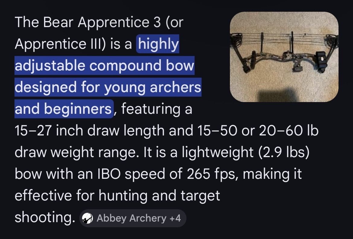 VenmoI am selling a youth bow it is the 15-50 pounds 15-27inch draw. It comes with 4 arrows a release and a soft case. I also have the same one in pink/purple if you are interested.