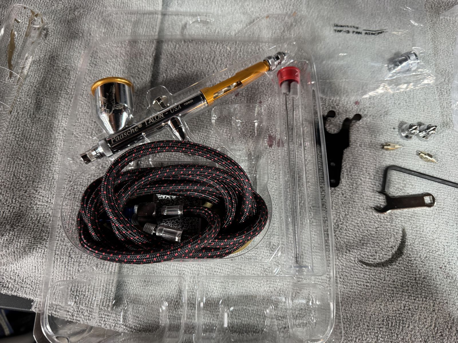 New just purchased and used it twice I just needed something larger. Comes with 3 different size needles and tips.