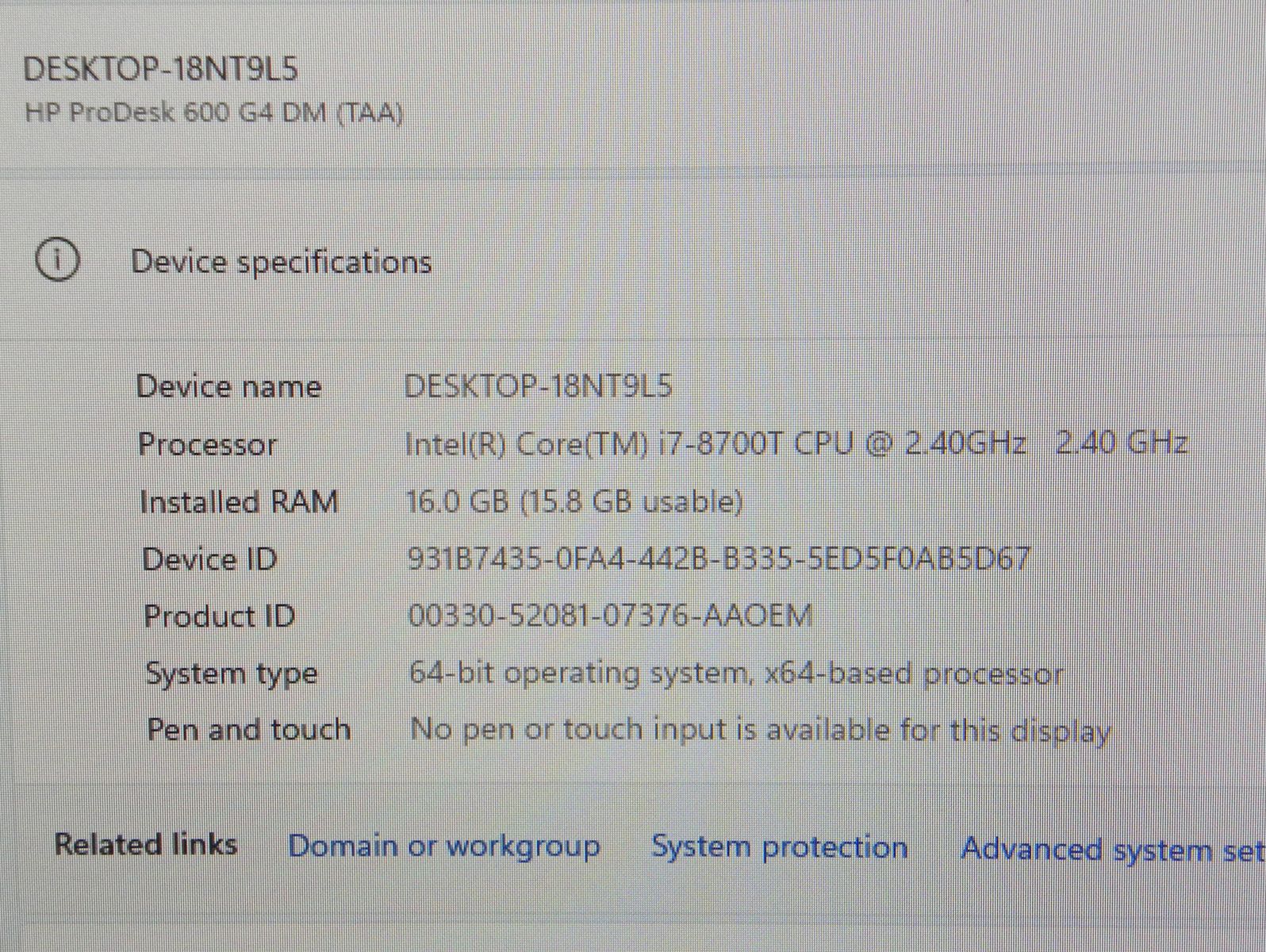 HP ProDesk 600 G4 MINI