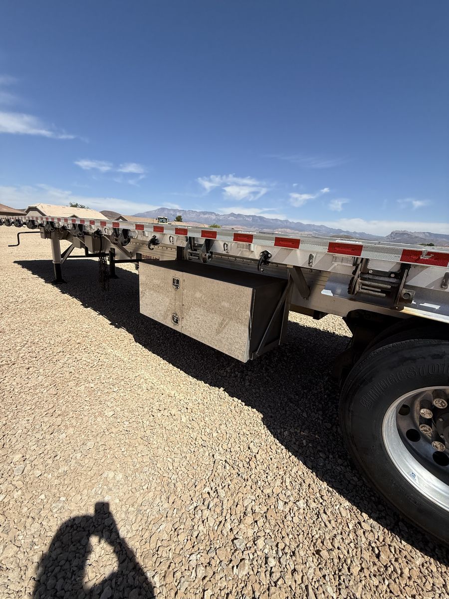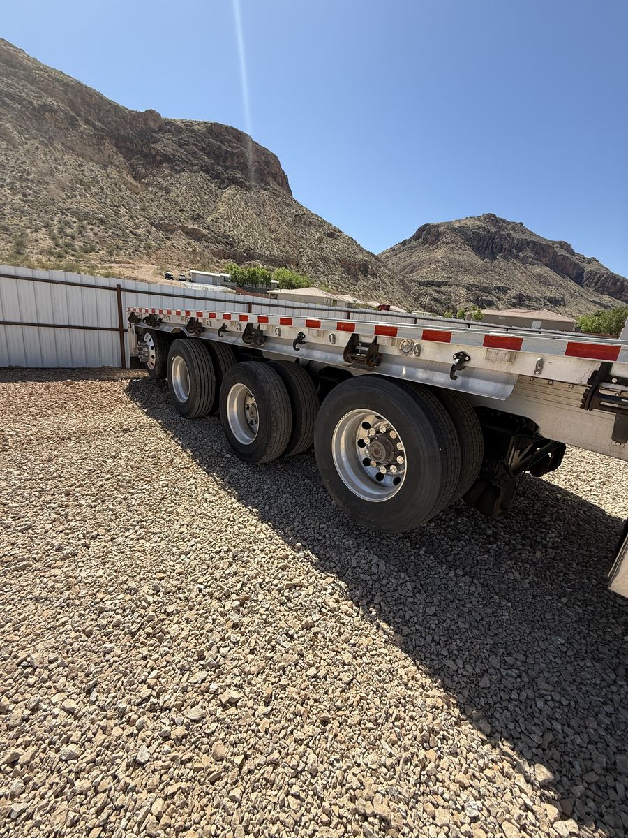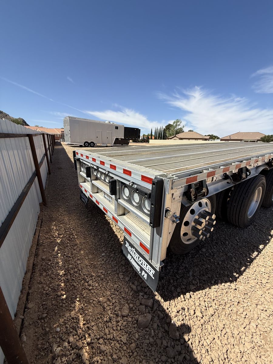 Solid 2016 Retinour 4-axle flatbed trailer ready to go to work. Great setup for hauling heavier loads with both front and rear lift axles.