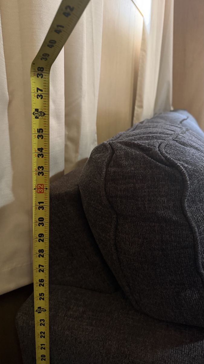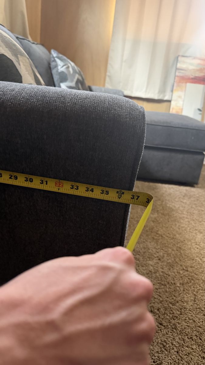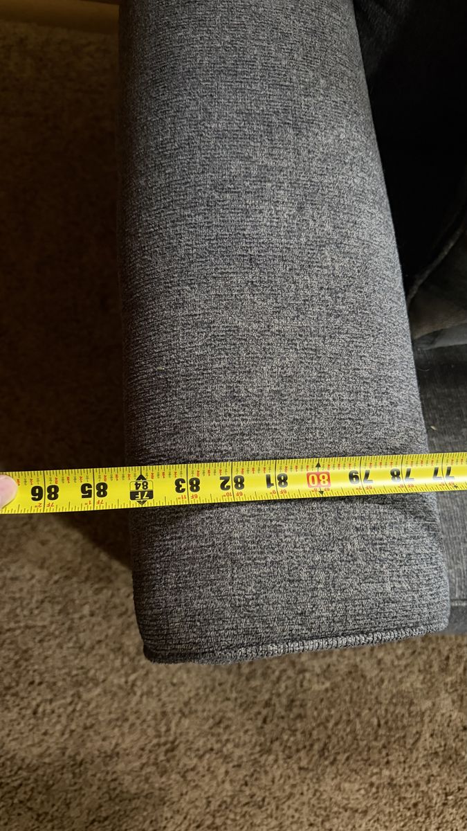 Approximate dimensions: 7ft wide 31in tall 37in deep L shape: 5ft long