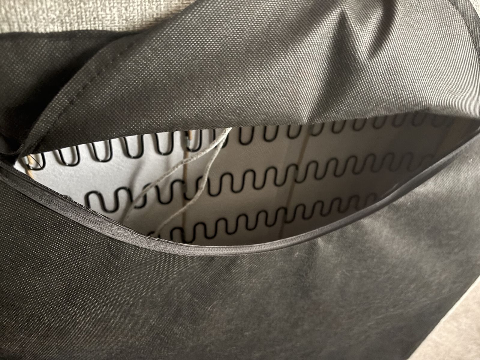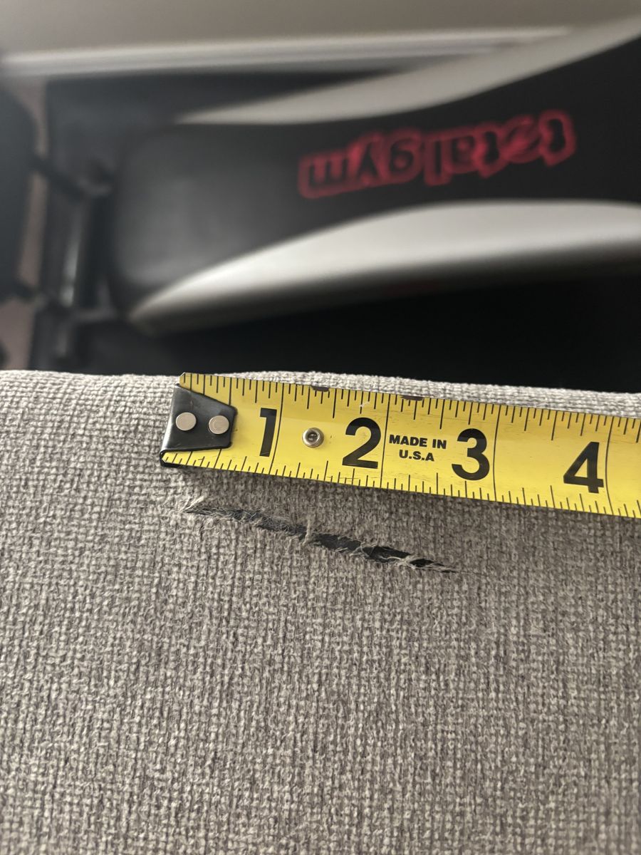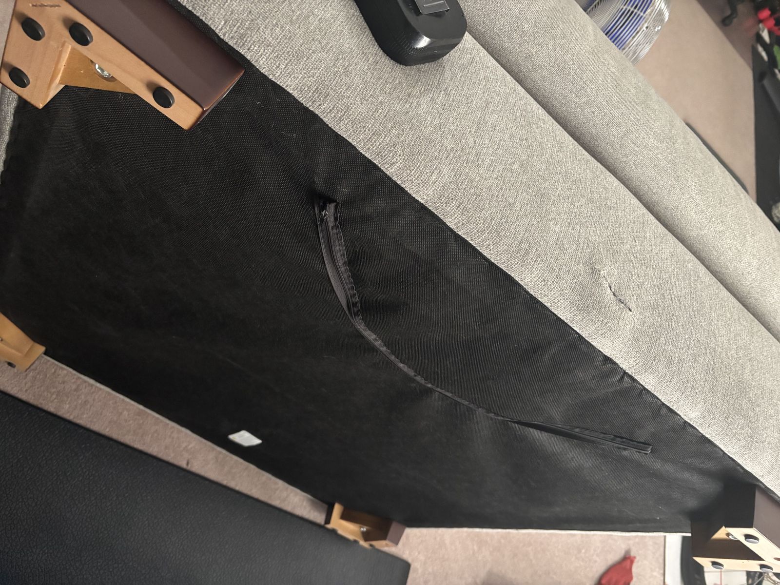 In great to excellent conditon overall (8/10) No stains, smells, 1 small rip (noted in images; created when unboxing).