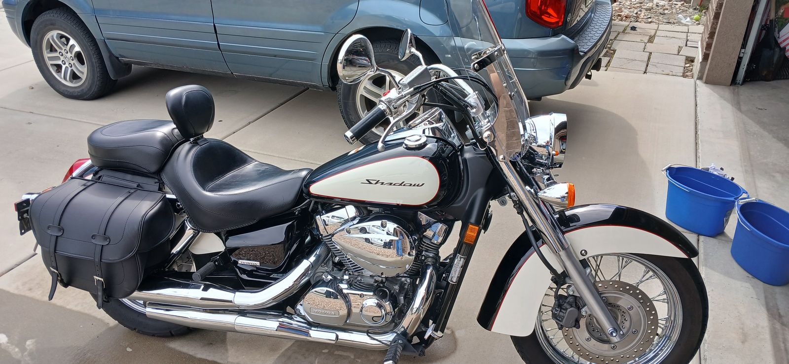 low miles, great condition, always garaged, Mustang seat and lumbar support, clear windscreen, clean engine, leather saddle bags