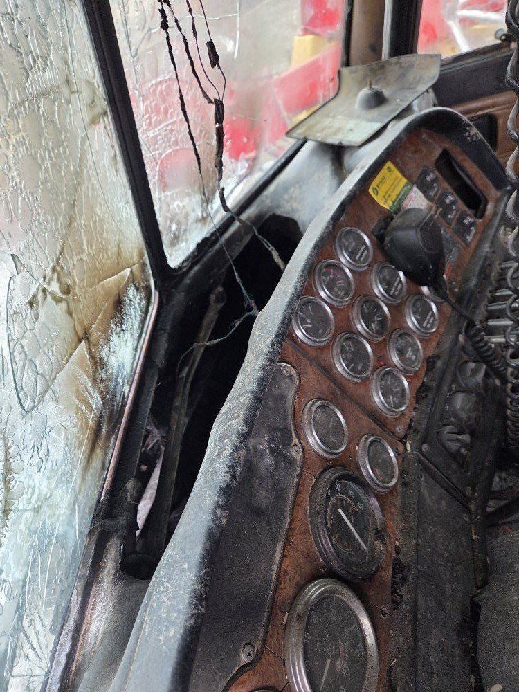 It had a cab fire. You can see from the pictures some of the damage. If interested I can get you more pictures. Please call for more information.