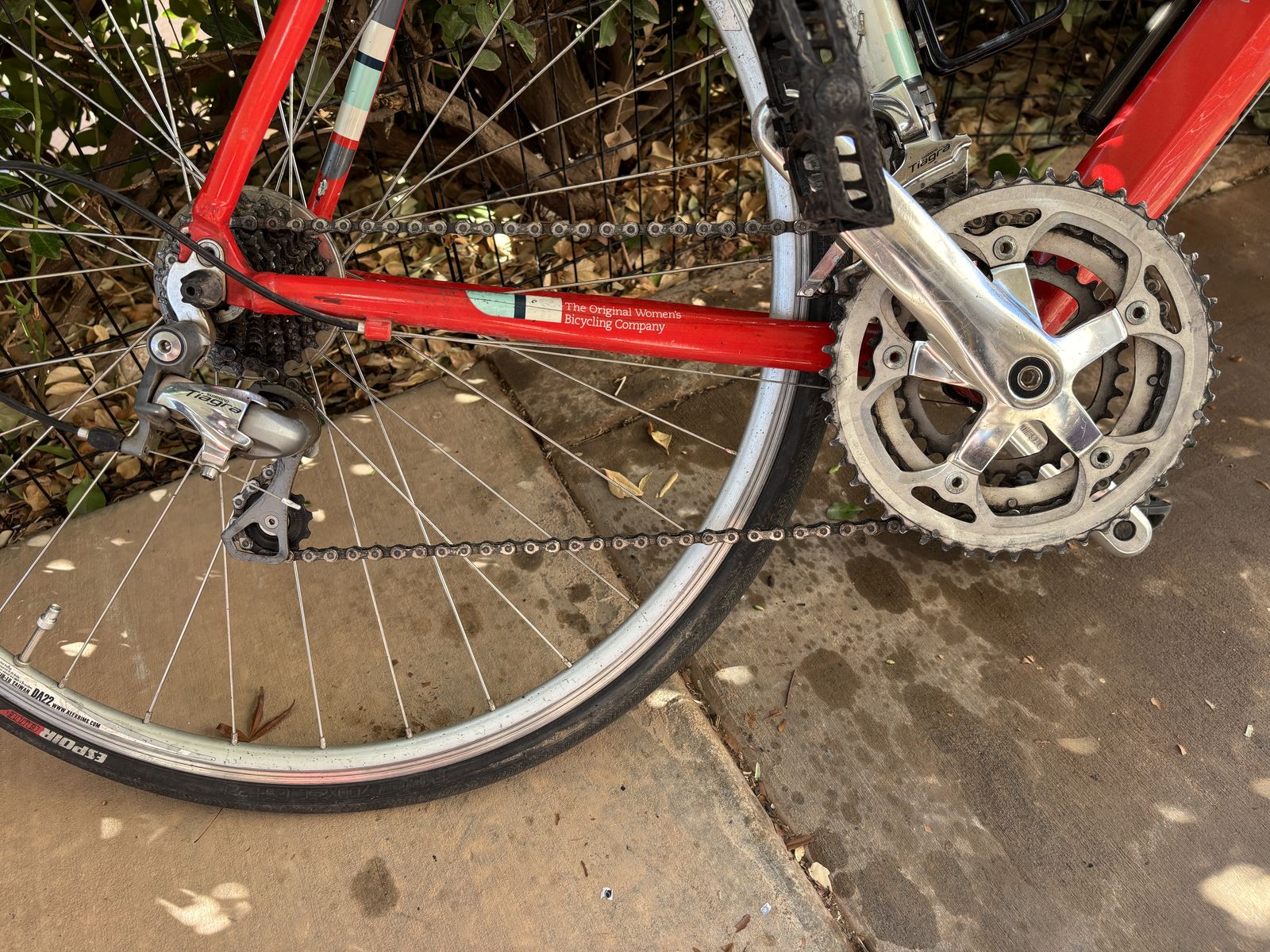 Venmo24" frame, 23 lbs., 30 speed, handlebar shifters, Shimano brakes and derailer, quick release tires, Cateye clock/timer. Terry is the original women's bicycling company. Been in storage 2 yrs, so will need new tires and tune up. $50 or OBO