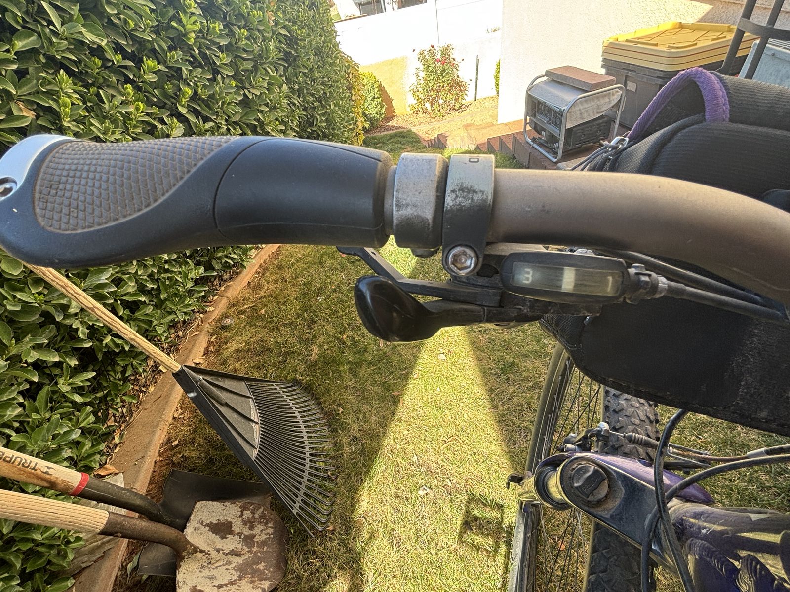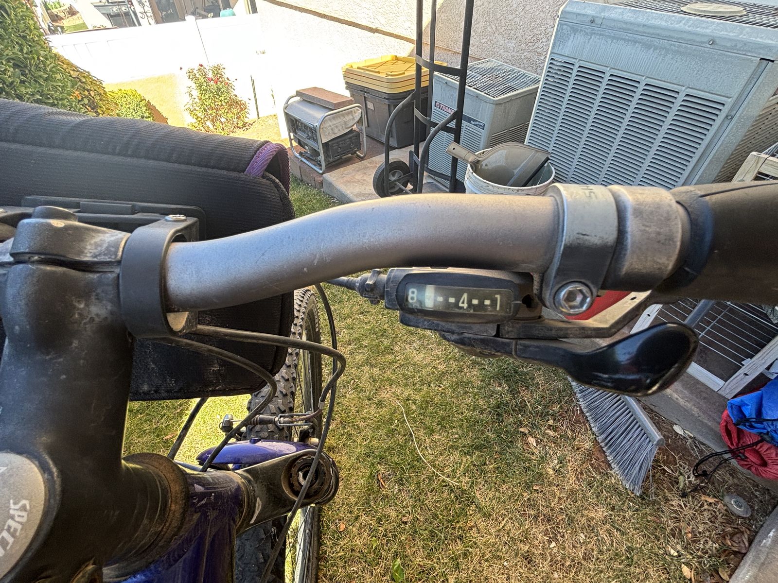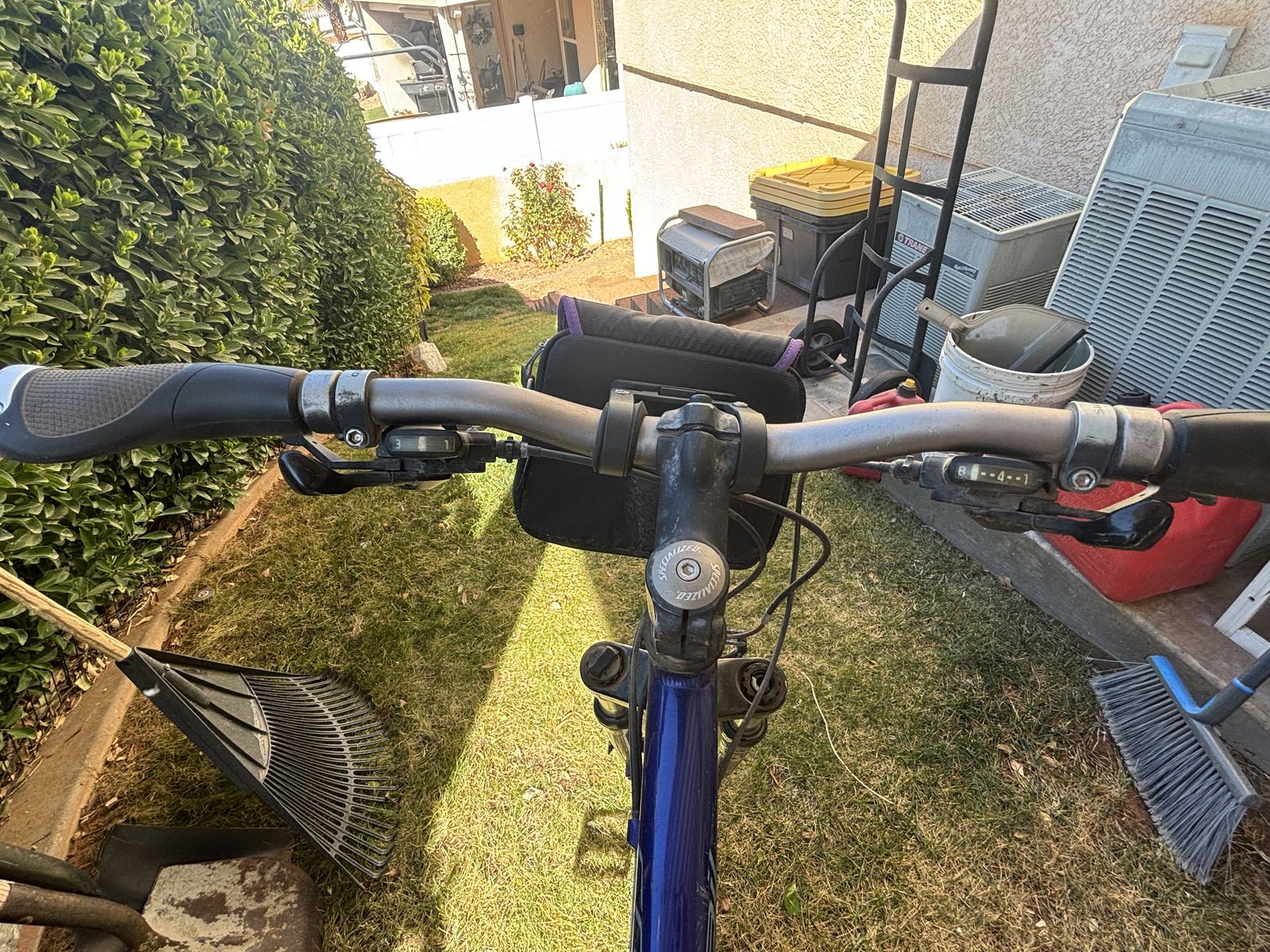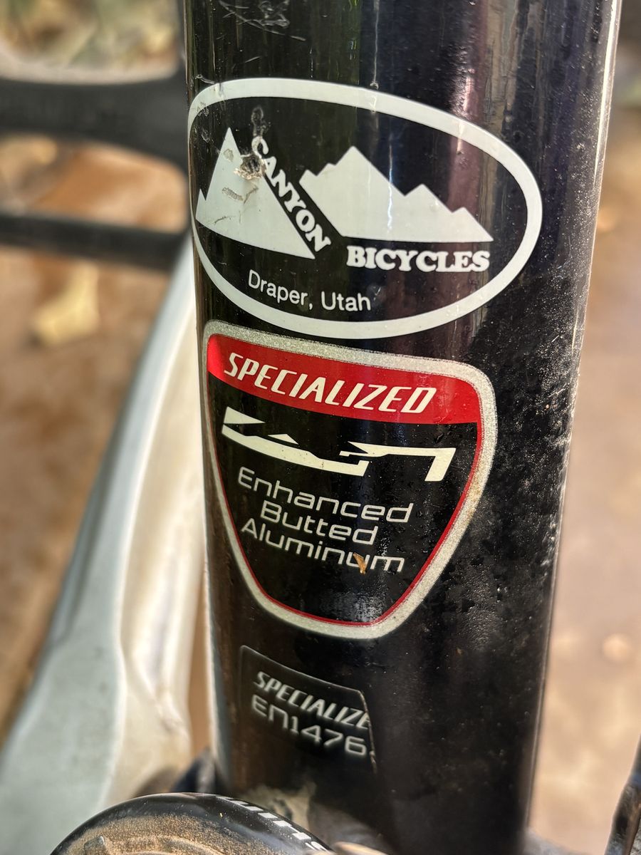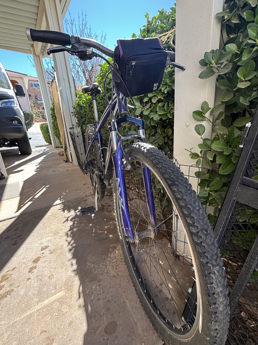 Venmo20" frame, 24 speed, handlebar click shifters, Shimano brakes and derailer, front fork shocks, enhanced butted aluminum frame, quick release tires, fanny pack, palm rest handlebar grips. Can use smoother tires for road or knobby tires for mountain trails. $75 or OBO.