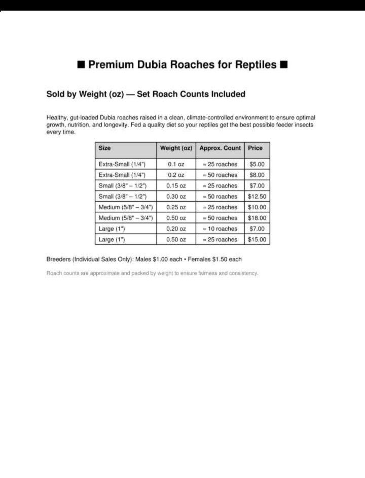 Venmo🦎 Healthy Dubia Roaches – All Sizes Available! 🦎