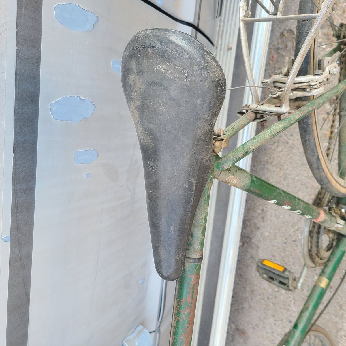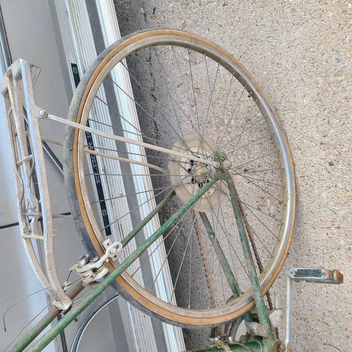 up for sale on this awesome vintage push brand bike. need some work. located in Roy Utah it is missing the bike stand it is broken off. brakes need works and needs tires