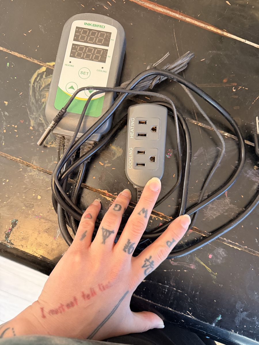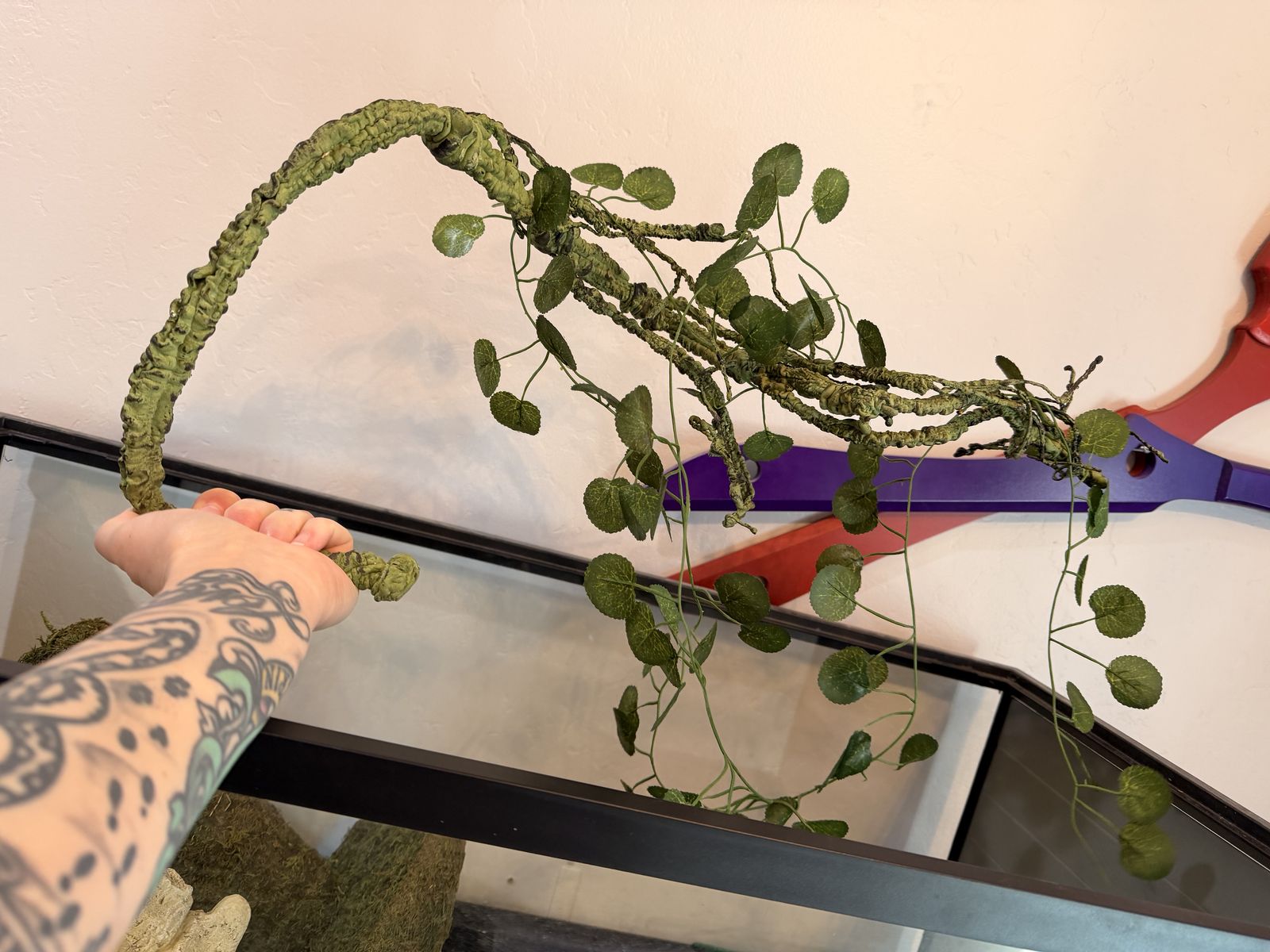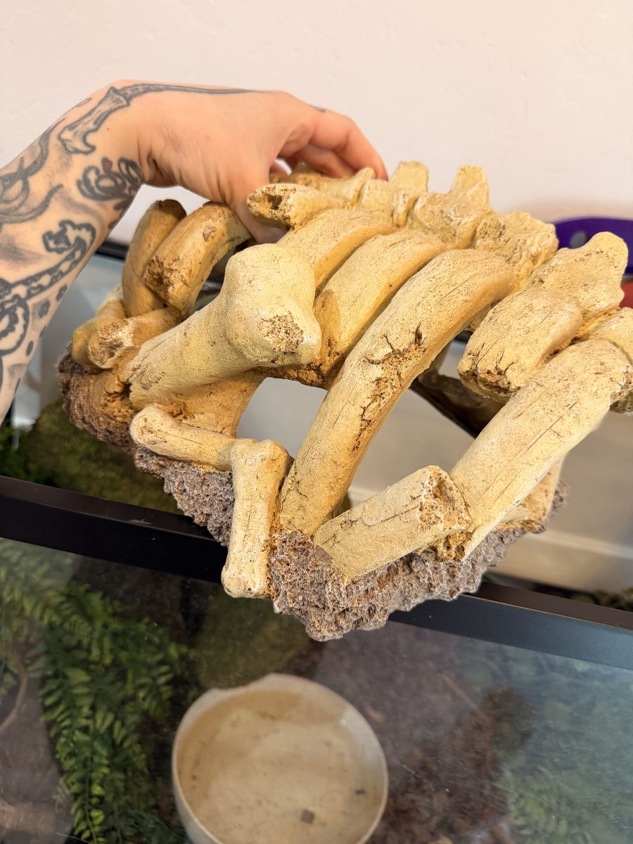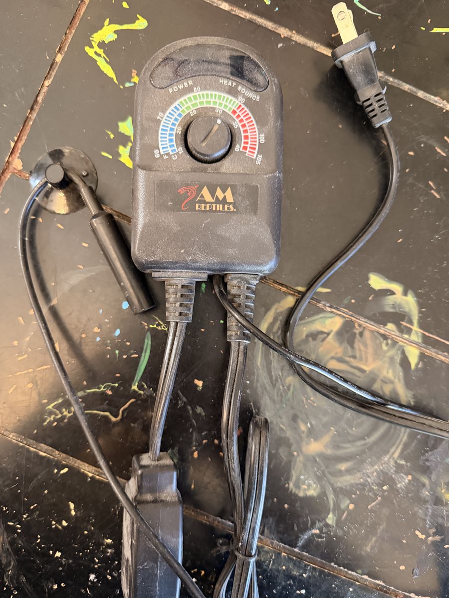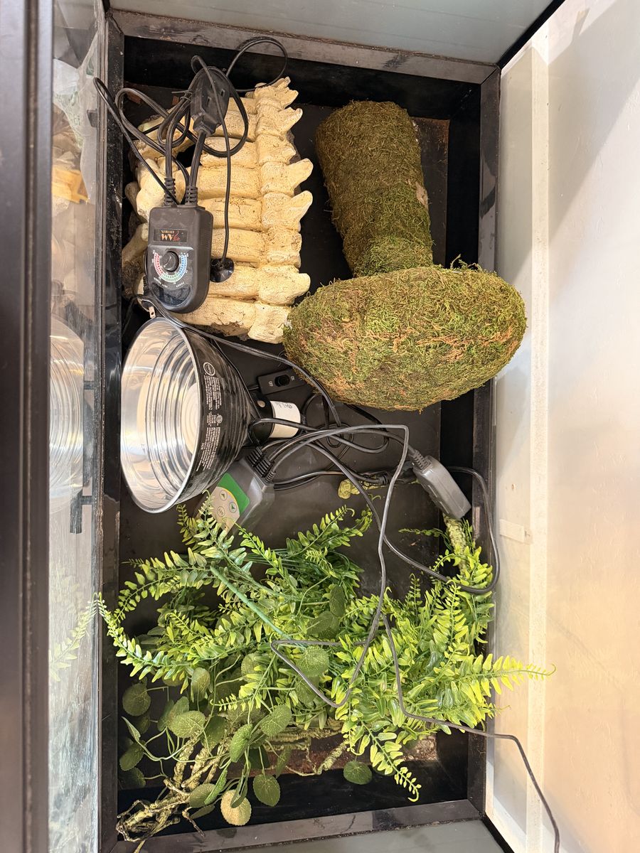 ApplePayTank is 36x18x18 inches and has a pullout drawer, snake enrichment, 2 hides, lamp, heat pad and temperature regulator.