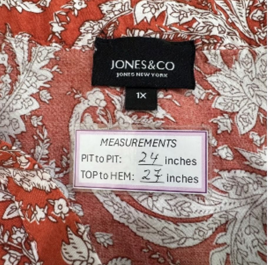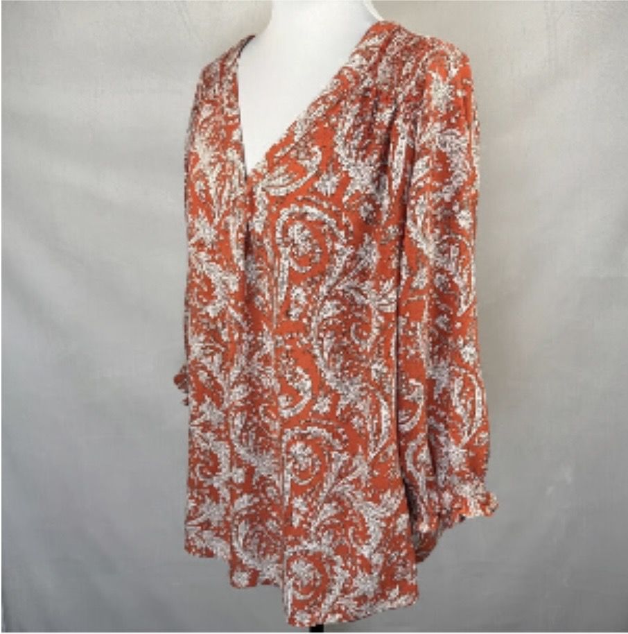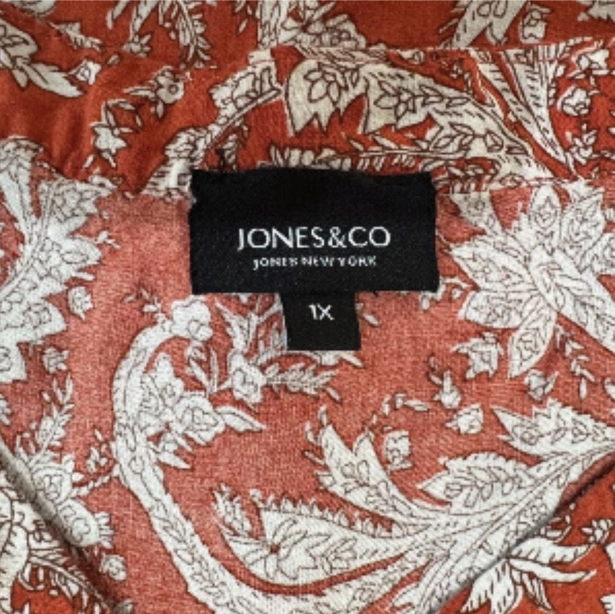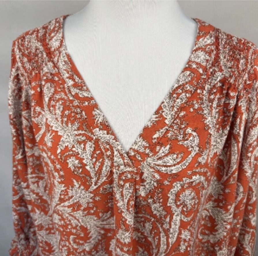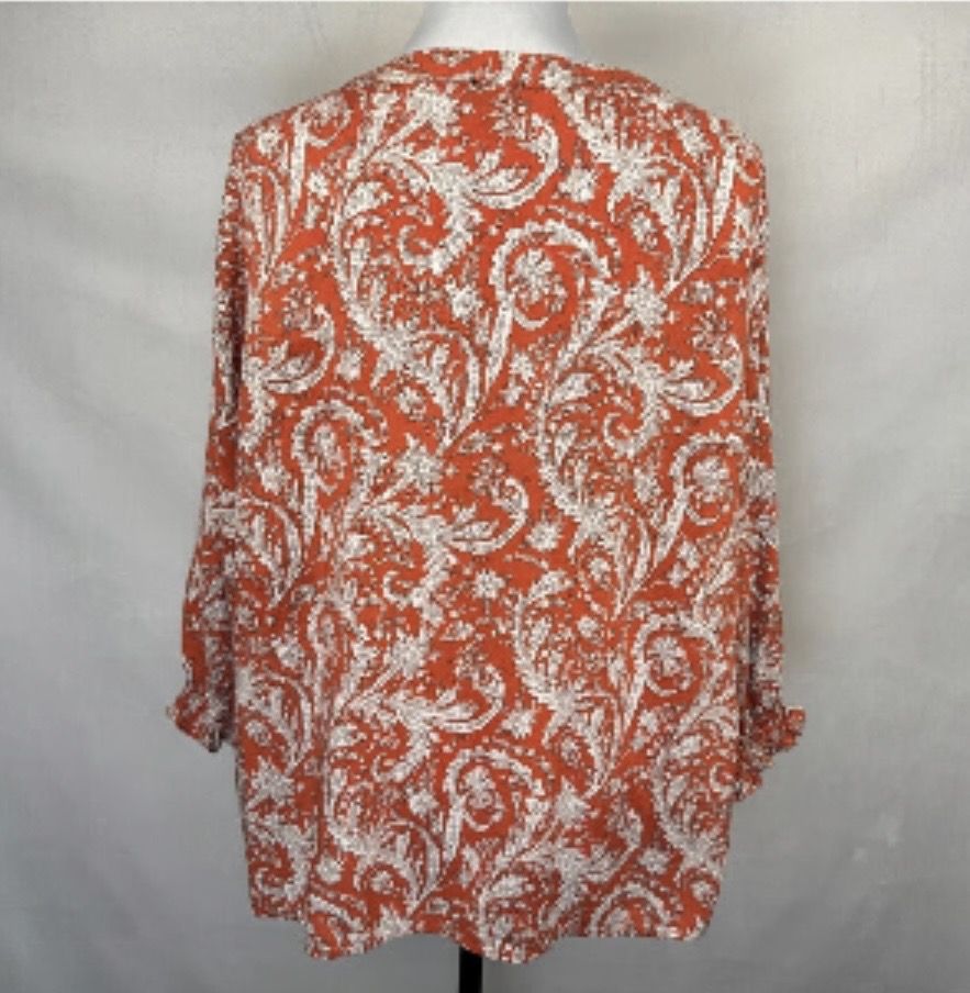 VenmoThis is a women’s size 1X Jones New York vneck Paisley Print 3/4 Elastic Sleeve Front Pleat blouse. It is in great condition. Beautiful blouse for an occasion. Cash or Venmo.