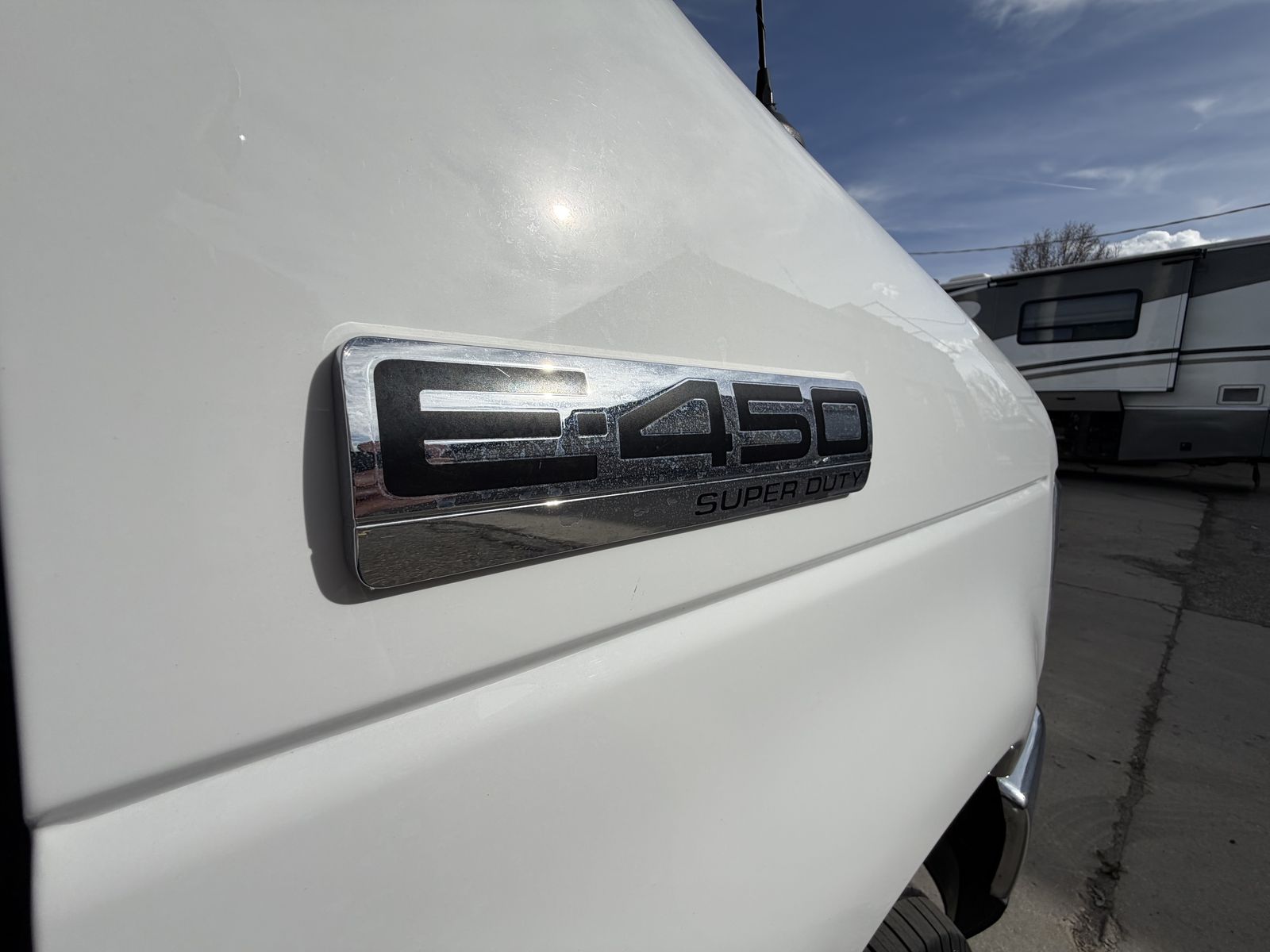Special ordered E-450 all others for sale currently are the E-350. This means larger towing capacity. Larger brakes and the better axle and suspension.