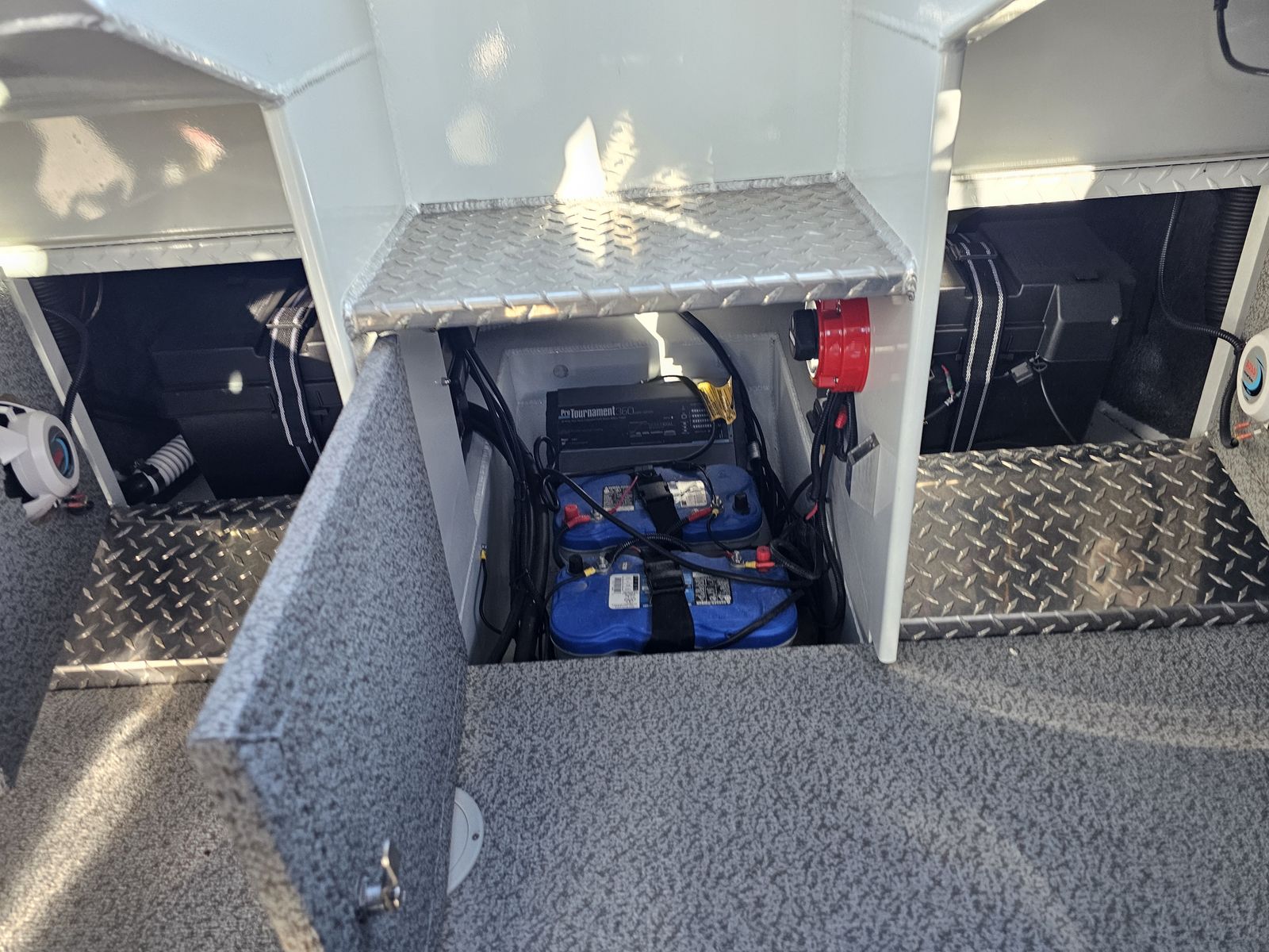 2 Charging systems for the 6 included 12-volt marine deep cycle batteries to run all your electronics