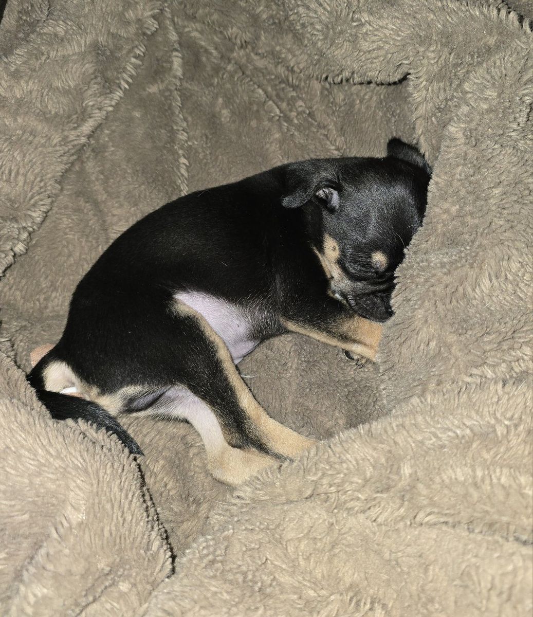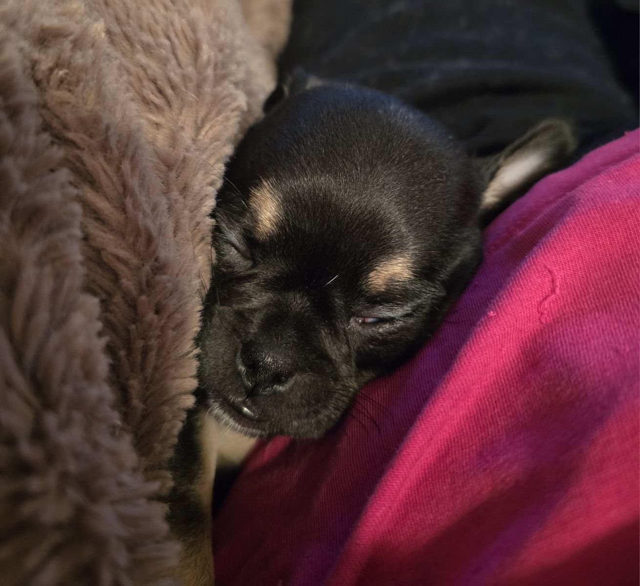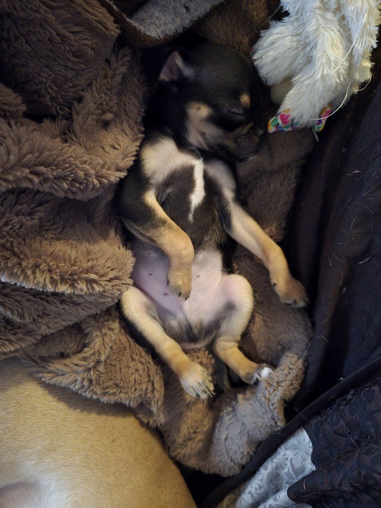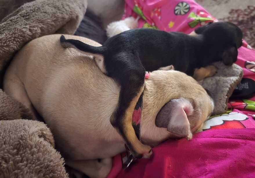 This sweet Chug puppy will be ready for his forever home on March 20. He is 9 weeks old and fully weaned from his mom. He is eating dry puppy food. He had his first set of vaccines. He is a love bug, who loves to give kisses.