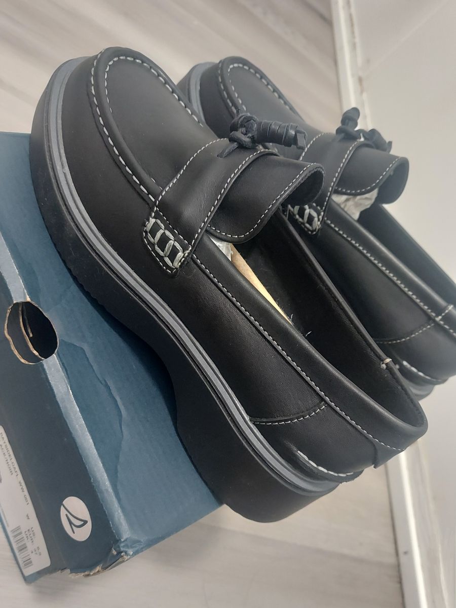 These are in brand new condition, they've never been worn and have been sitting in their box safely since I got them. Size 6.5 and I believe this is the wide size. Material wise, they are a full-grain leather upper and recycled cotton footbed. *(According to Zappos.)*Cash only, pickup only please.
