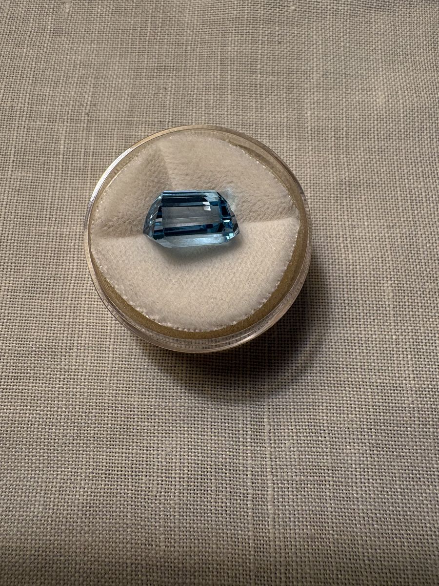 6.09ct Blue Topez stone. Emerald cushion cut. It is a genuine stone. It’s never been set. Purchased in 1959. It’s in its original case. Stunning. Item is in Millcreek.