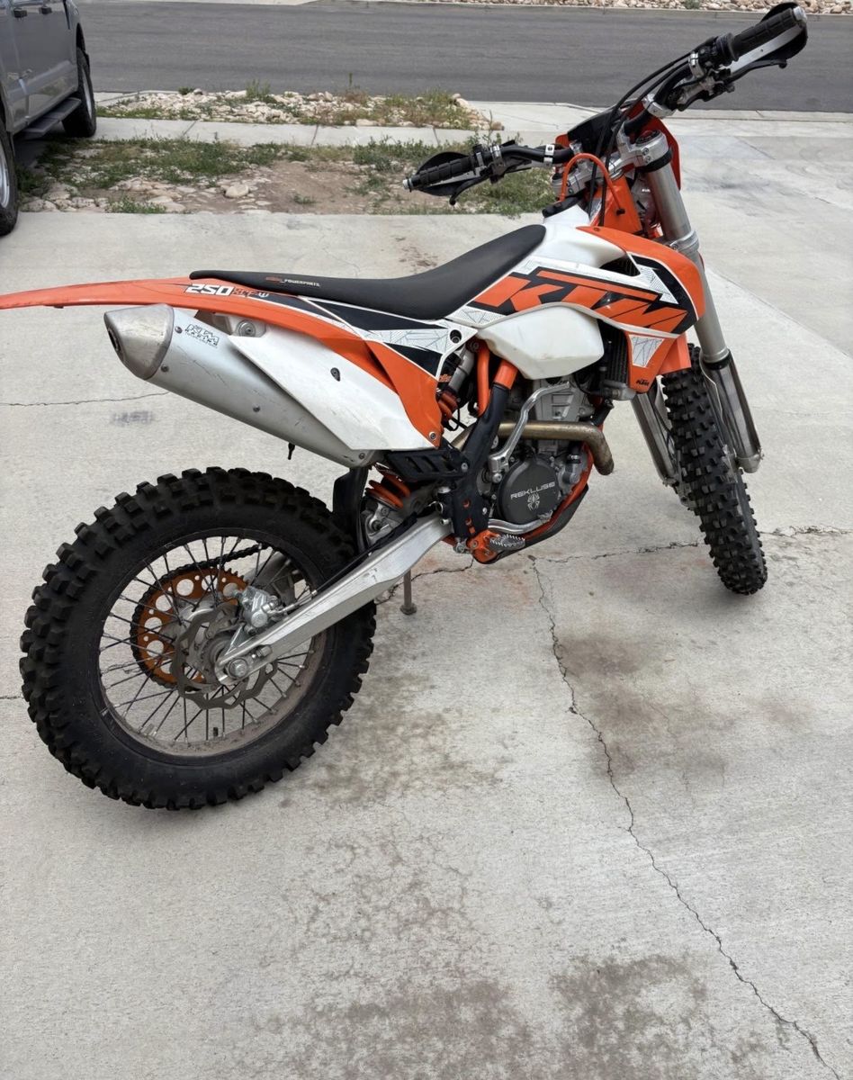 Venmo2016 ktm 250 xcfw Ready to ride with no problems Recluse clutch Brand new lithium battery Last year they made it with electric and kick start 80 hrs. Clean title in hand 4800 obo open to trades for an e mountain bike.