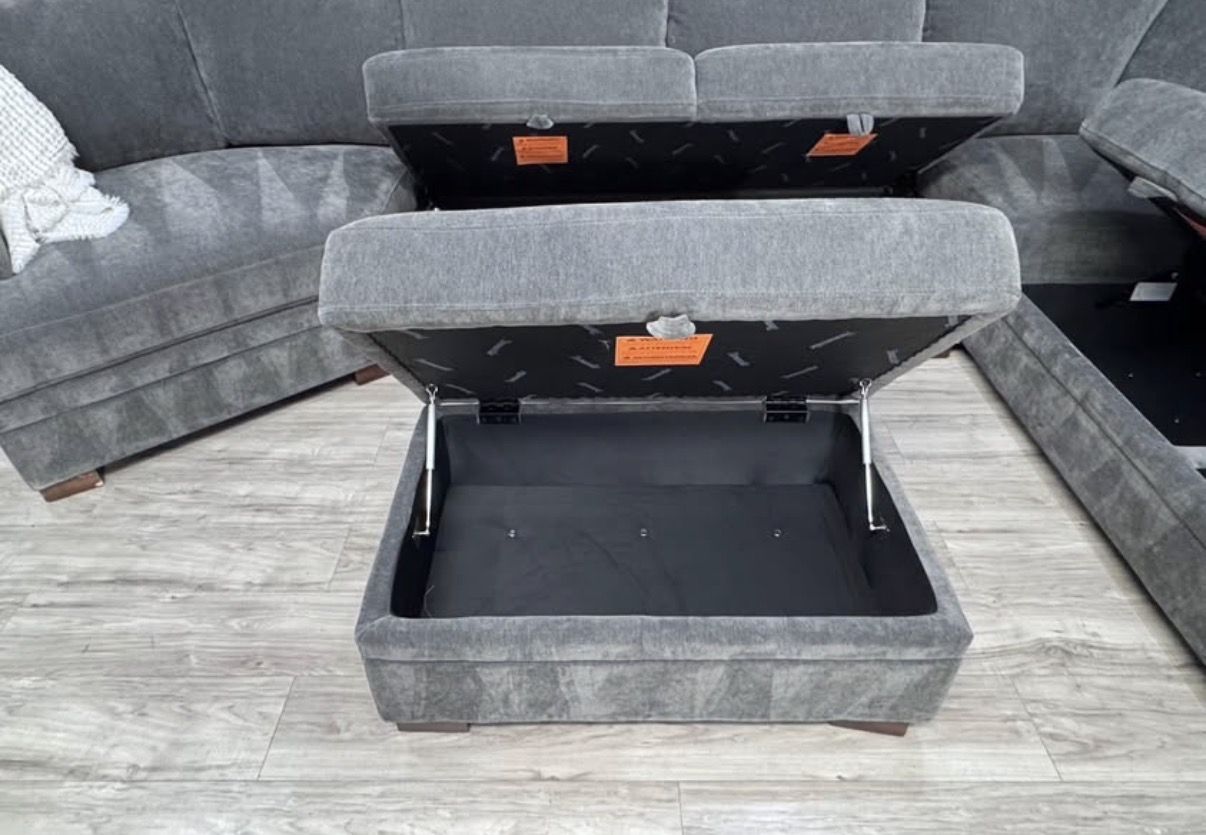 The Thomasville Merran Sectional with Storage Seats redefines comfort and functionality. With its oversized angled corner chair, this large L-shaped sectional is a striking centerpiece for any living or family room. Enjoy the hidden storage in four seats-ideal for keeping blankets and pillows neatly stowed away. The gentle curve of the mailbox-style arm and solid wood legs add a modern, timeless touch to your space. Crafted for both beauty and convenience, the zippered back and attached seat cushions offer a tailored look, while the spacious layout provides plenty of room to relax or entertain.