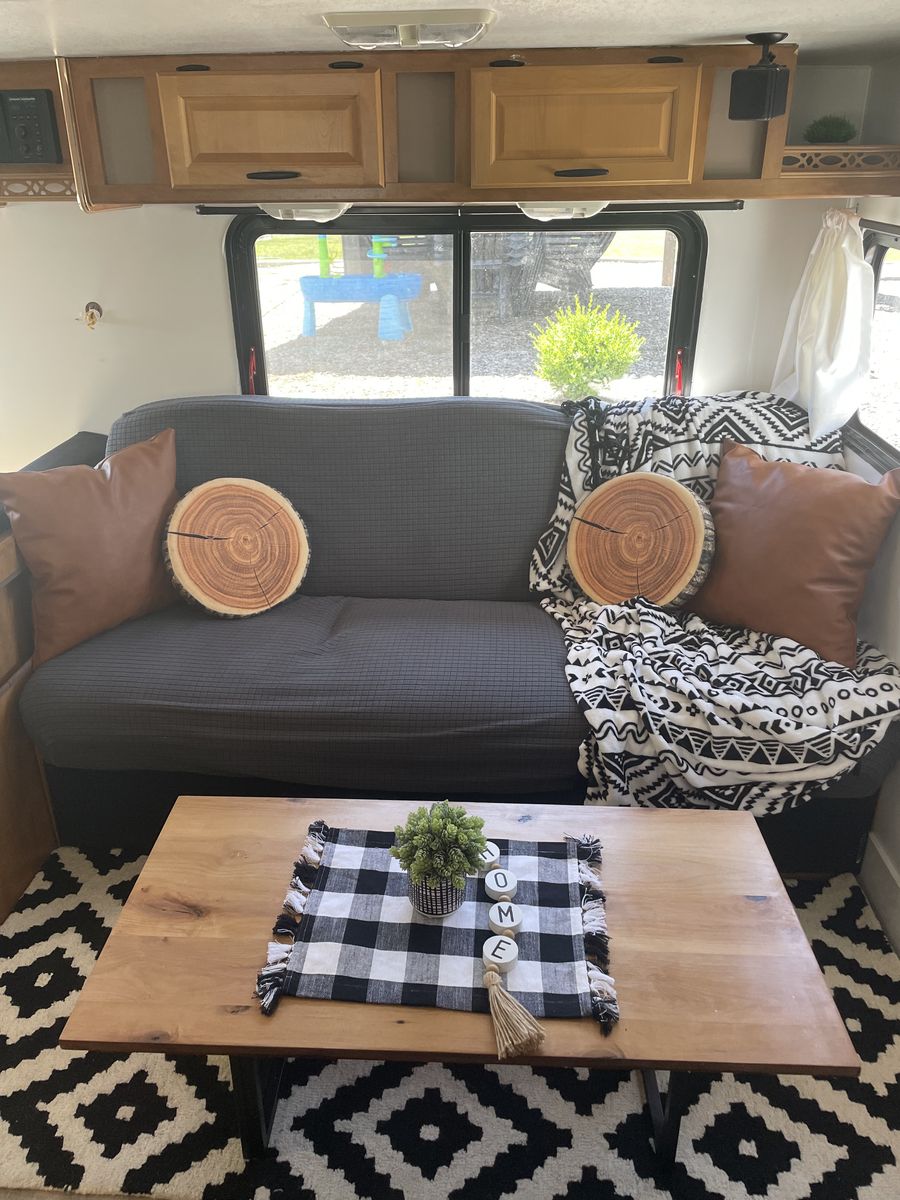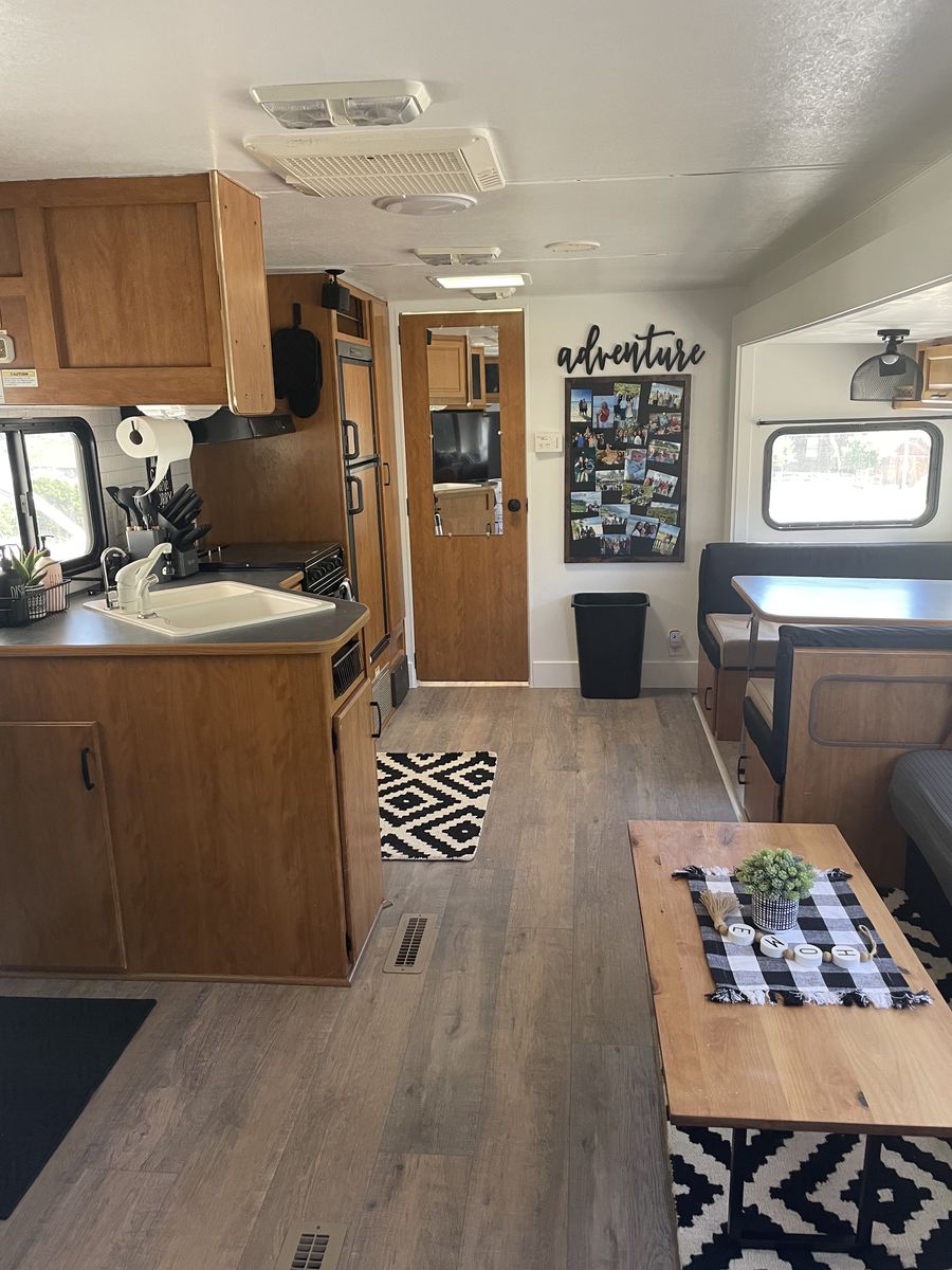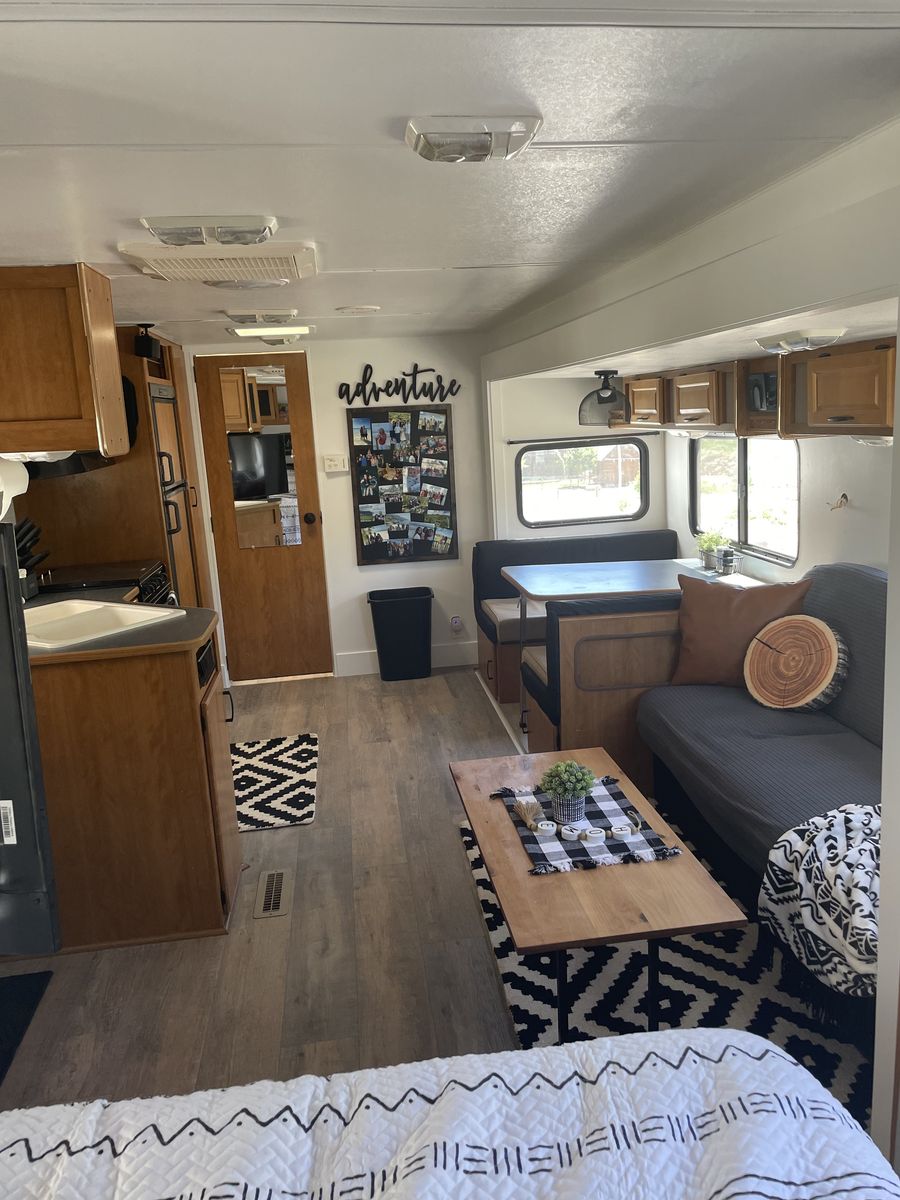 VenmoCompletely remodeled inside that has a modern design on it. 27ft long with 1 slide out that makes it as roomy as it can be. Around 6,000-7,000 pounds.